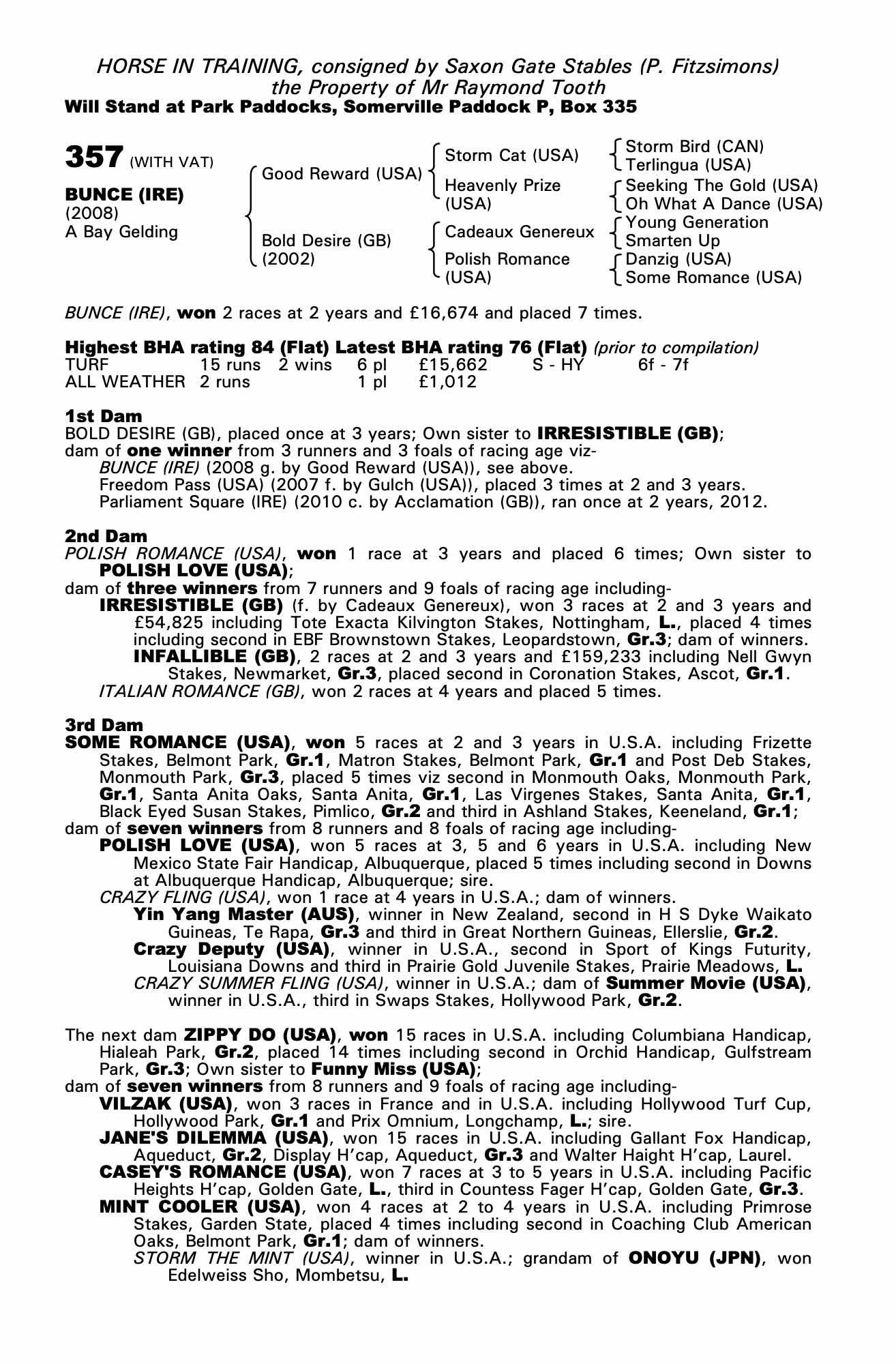 Consignor: Saxon Gate Stables (P. Fitzsimons)