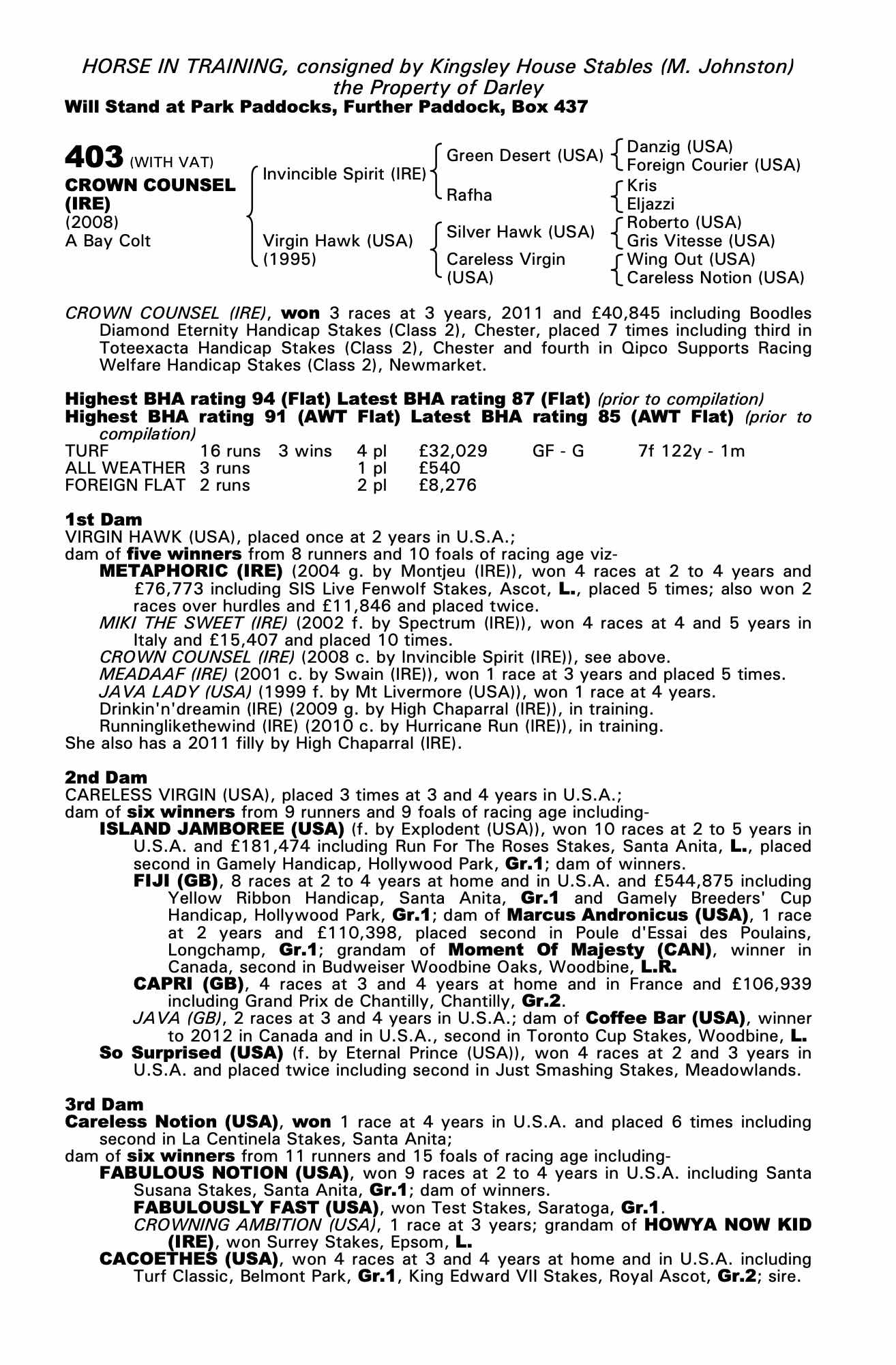 December Yearling Sale 2011 lot 76 C. by Hurricane Run (IRE) 2010, Whatton Manor Stud=>CF Wall 12,000 gns