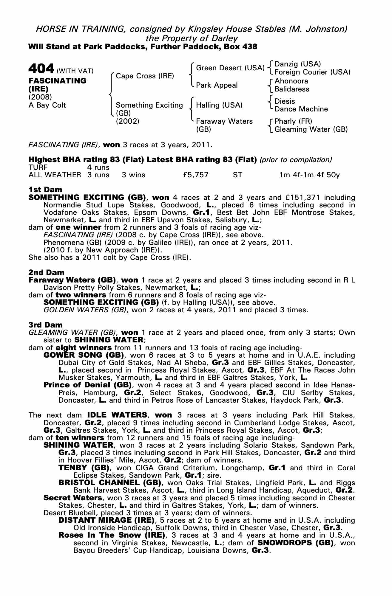 Consignor: Kingsley House Stables (M. Johnston)