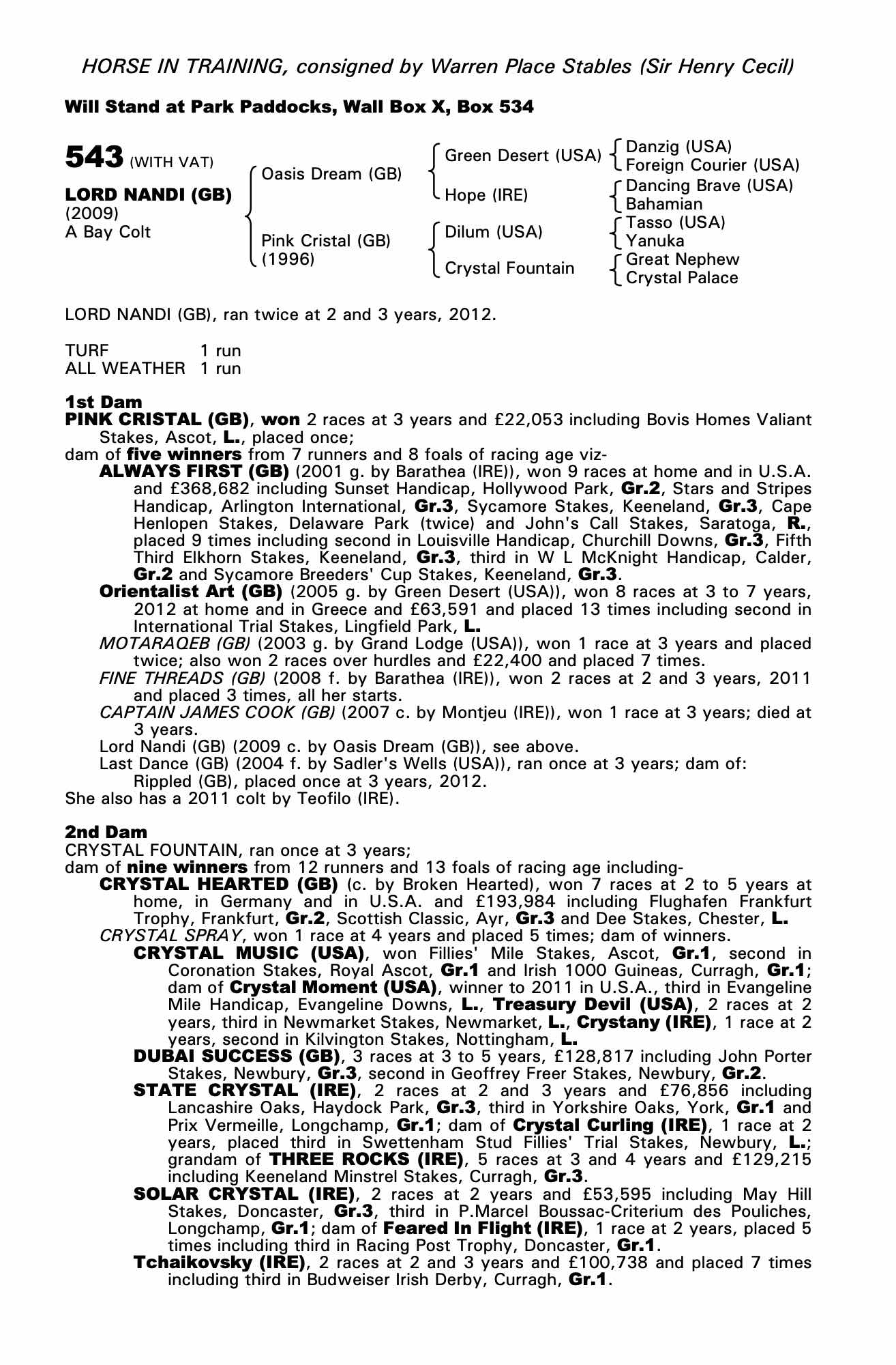 Consignor: Warren Place Stables (Sir Henry Cecil)