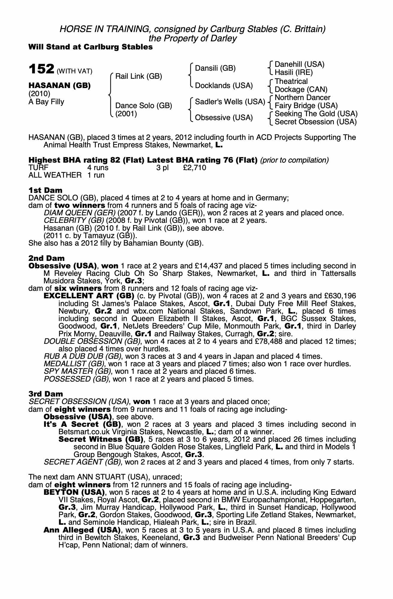 Ascot November Sale 2019 lot 77 Celebrity (GB) (M. by Pivotal (GB)), Windmill Farm=>Hever Stud Farm £600