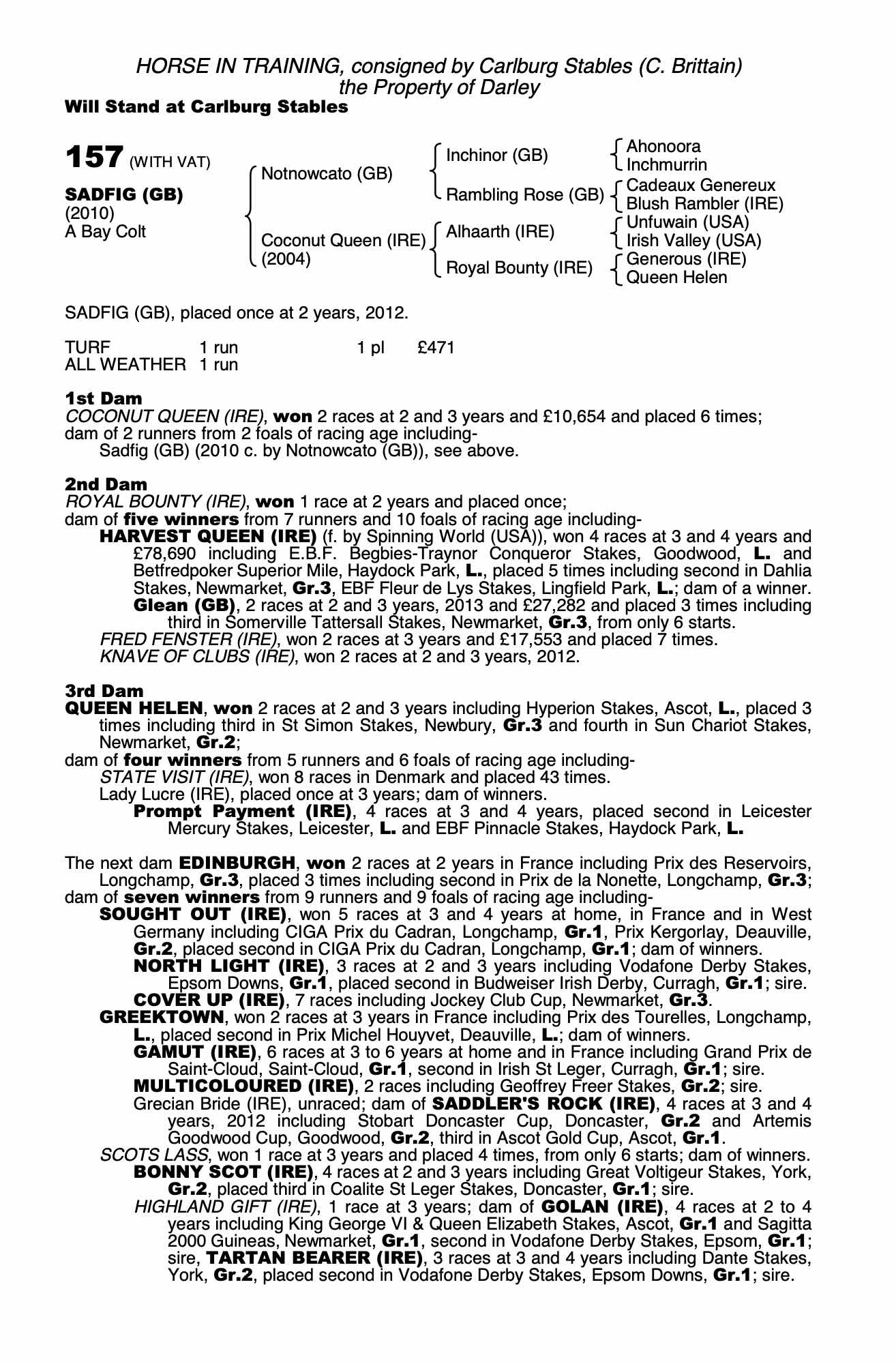 October Yearling Sale, Book 2 2010 lot 921 C. 2009, Stanley House Stud=>Paul D'arcy 20,000 gns