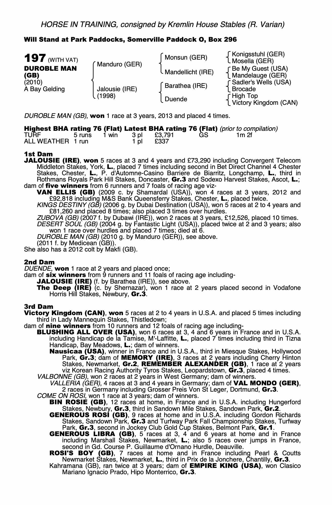 Consignor: Kremlin House Stables (R. Varian)