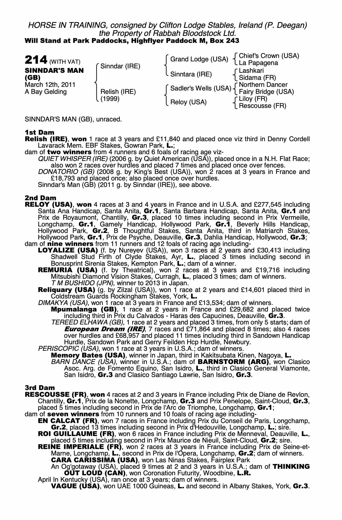 Consignor: Clifton Lodge Stables, Ireland (P. Deegan)