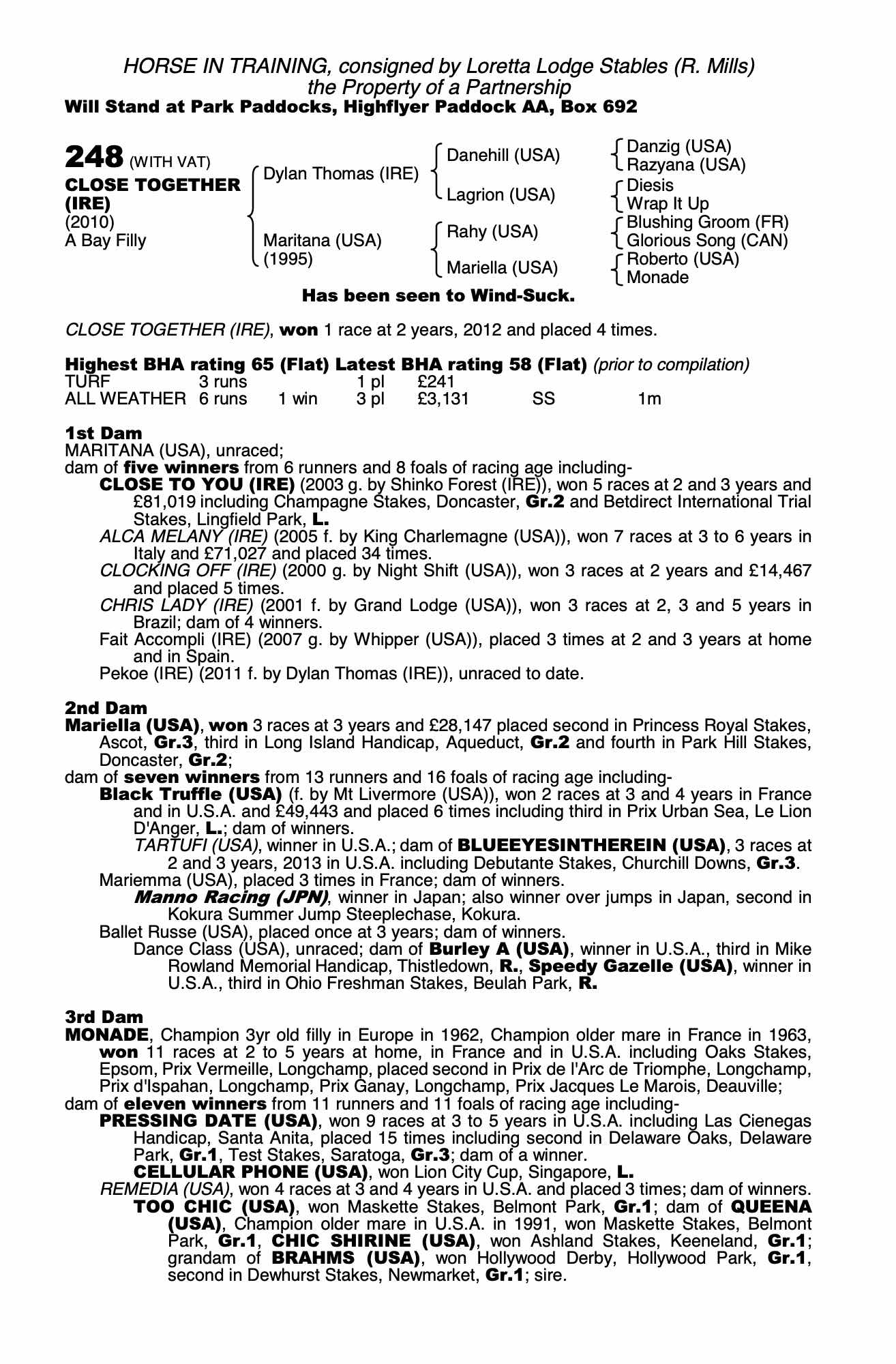 Consignor: Loretta Lodge Stables (R. Mills)