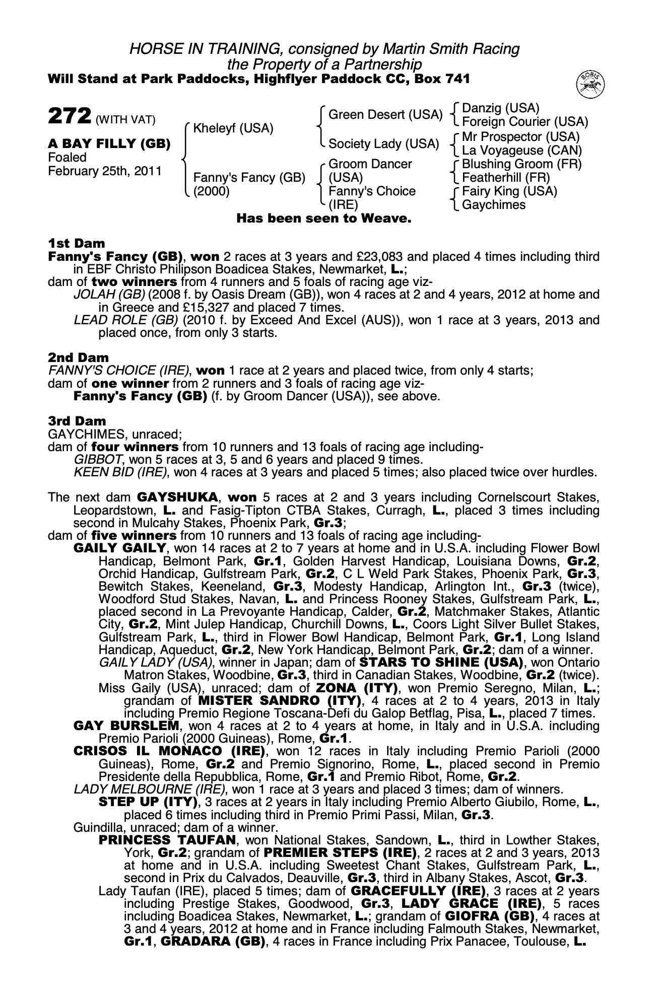 July Sale 2013 lot 166 Lead Role (GB) (F. by Exceed And Excel (AUS)), Jamesfield Stables (J. Tate)=>Ali Elmesawi 1,200 gns
