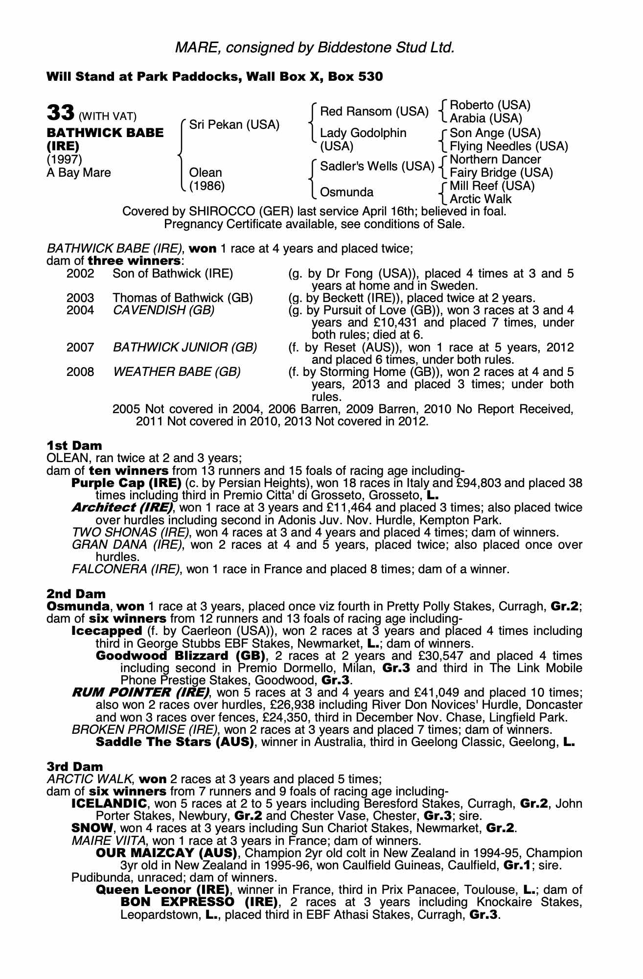 December Mare Sale 2001 lot 2059 Bathwick Babe (IRE) (M.), Throckmorton Court Stud=>Vendor 17,000 gns