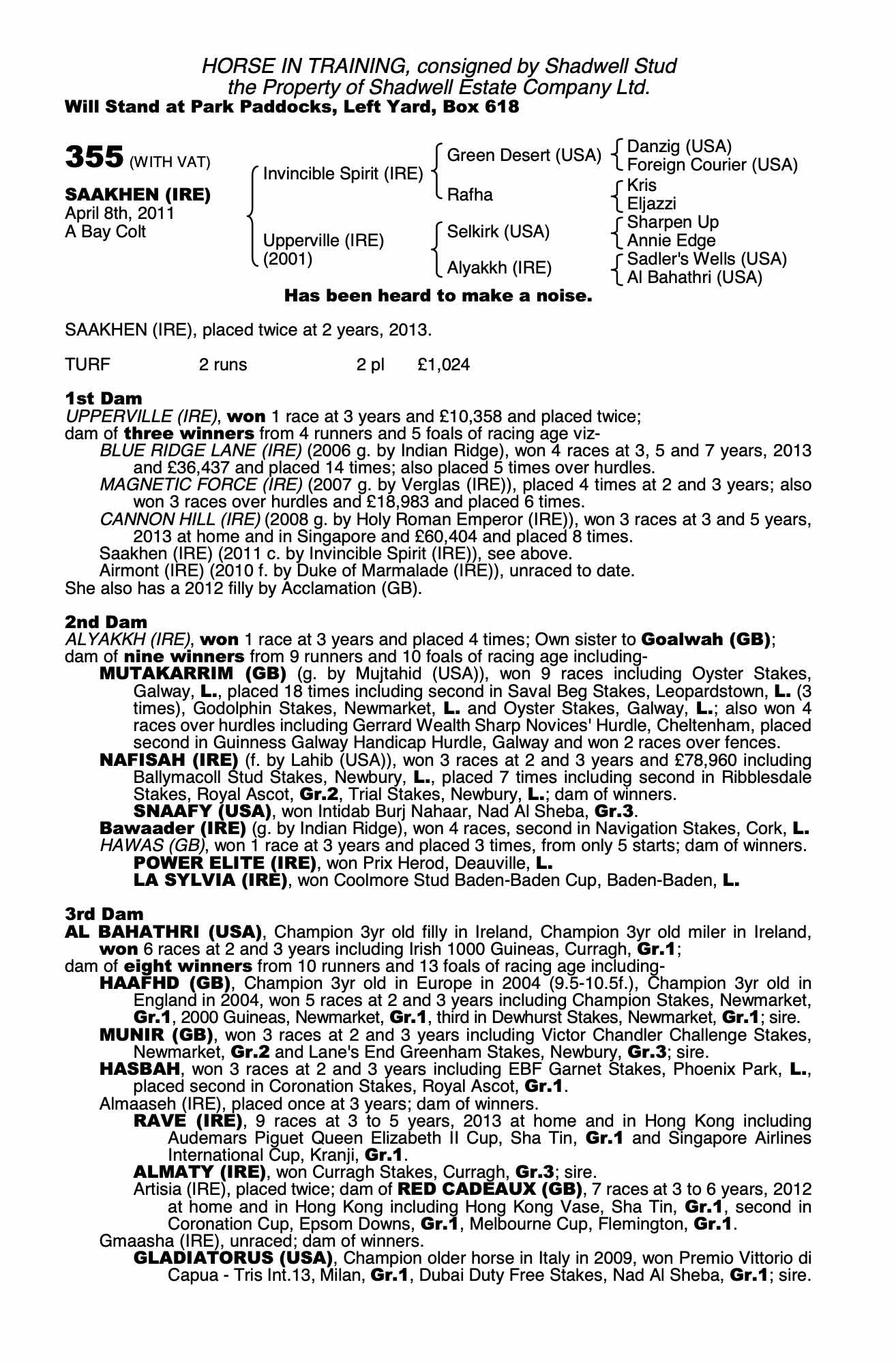 July Sale 2014 lot 672, Middleham Park Racing=>Gassim Mohammad Ghazali 28,000 gns