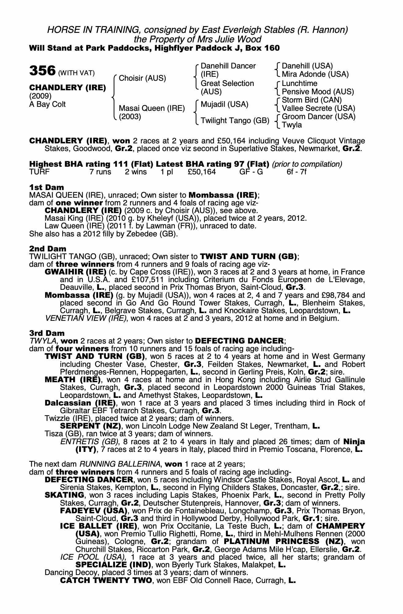 December Yearling Sale 2012 lot 98 F. by Lawman (FR) 2011, Owenstown Stud, Ireland=>Lily Corporation LP 21,000 gns