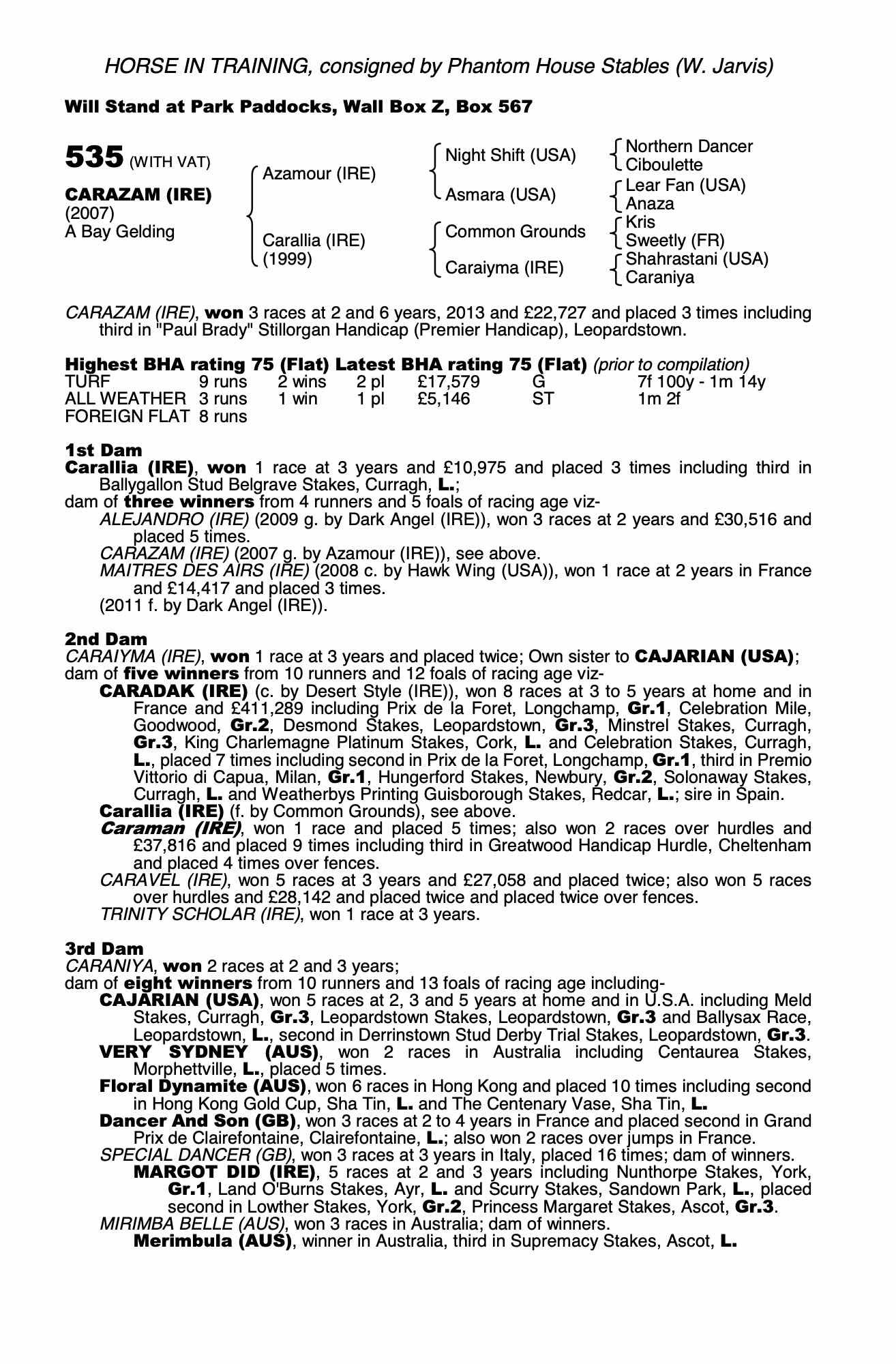 Consignor: Phantom House Stables (W. Jarvis)