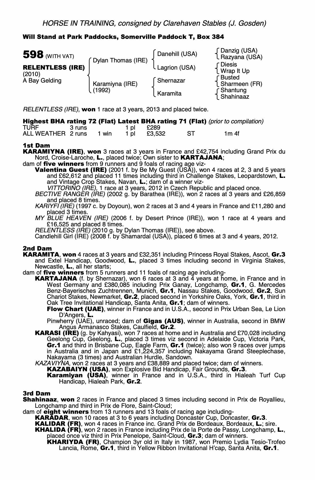Consignor: Clarehaven Stables (J. Gosden)