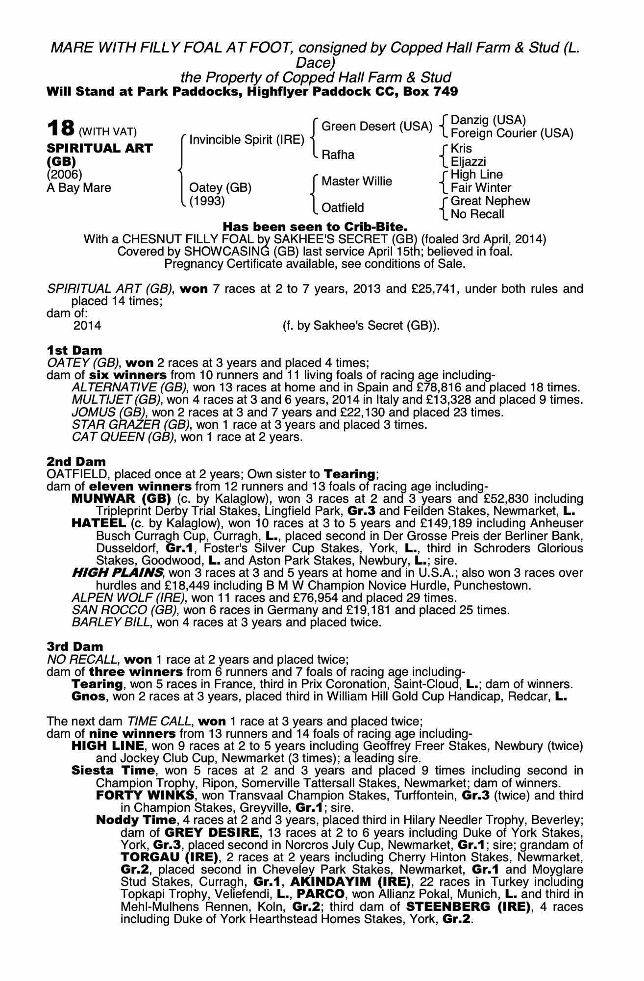 Consignor: Copped Hall Farm & Stud (L. Dace)
