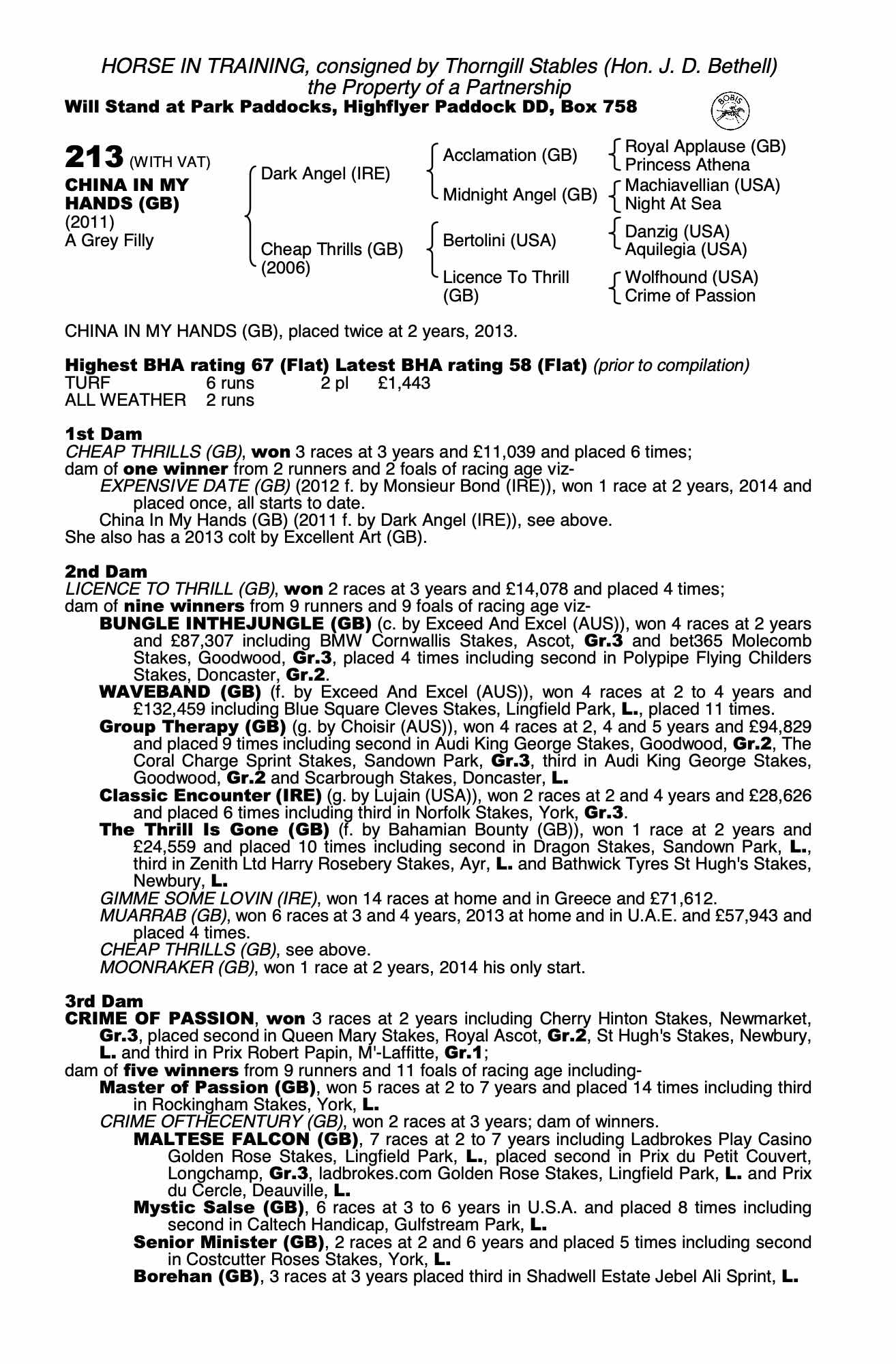 Consignor: Thorngill Stables (Hon. J. D. Bethell)