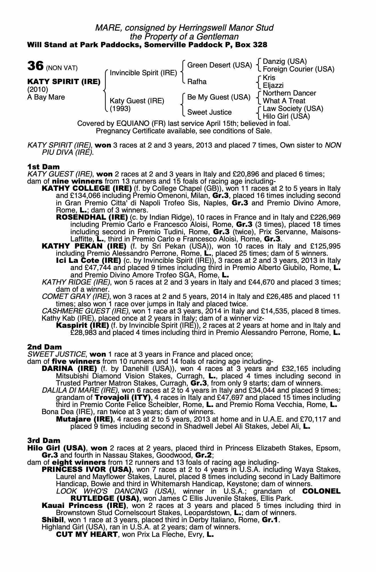 Consignor: Herringswell Manor Stud