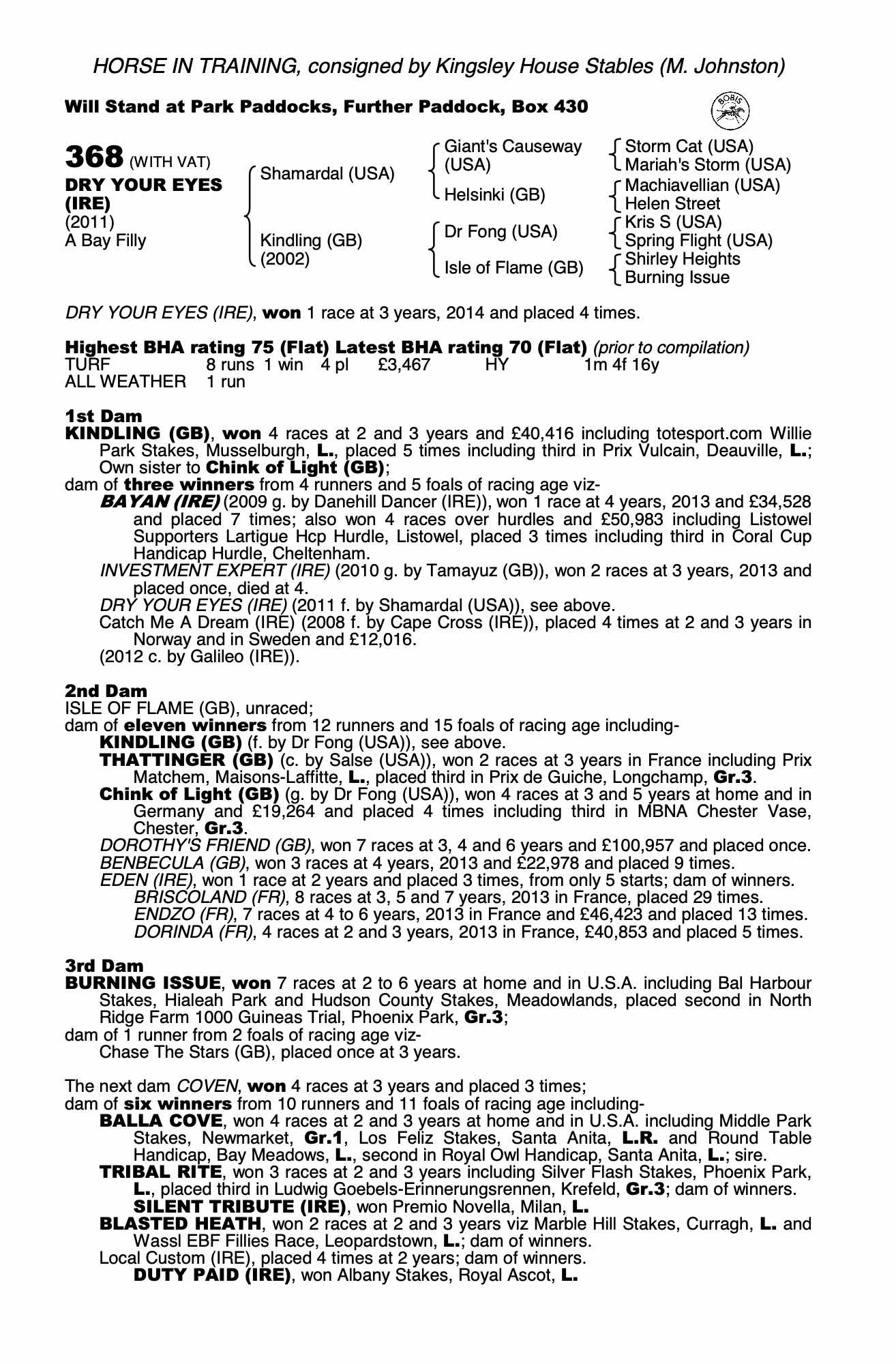 Consignor: Kingsley House Stables (M. Johnston)