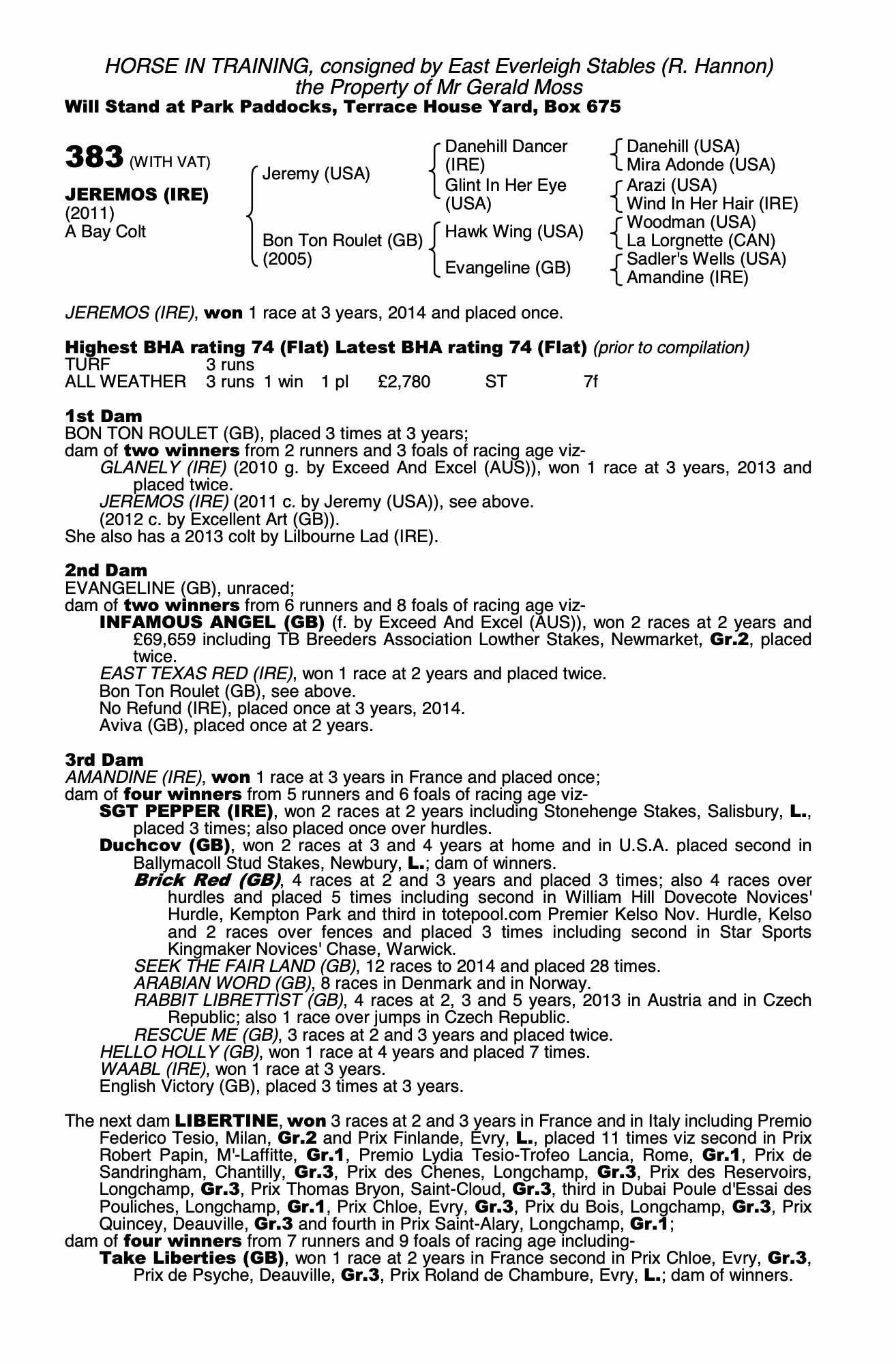 July Sale 2015 lot 292 C. by Lilbourne Lad (IRE) 2013, Ballydaly Stables, Ireland=>Mostafa MA El-Bakkoush 1,800 gns