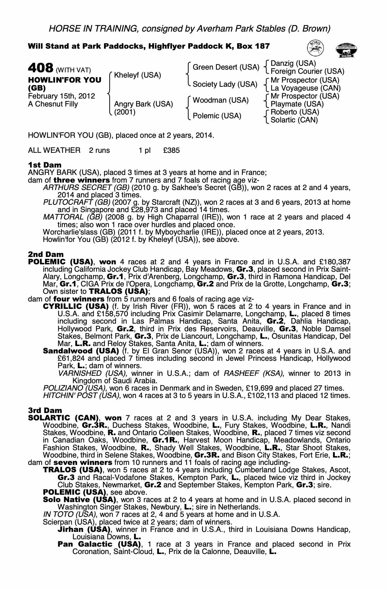 Consignor: Averham Park Stables (D. Brown)