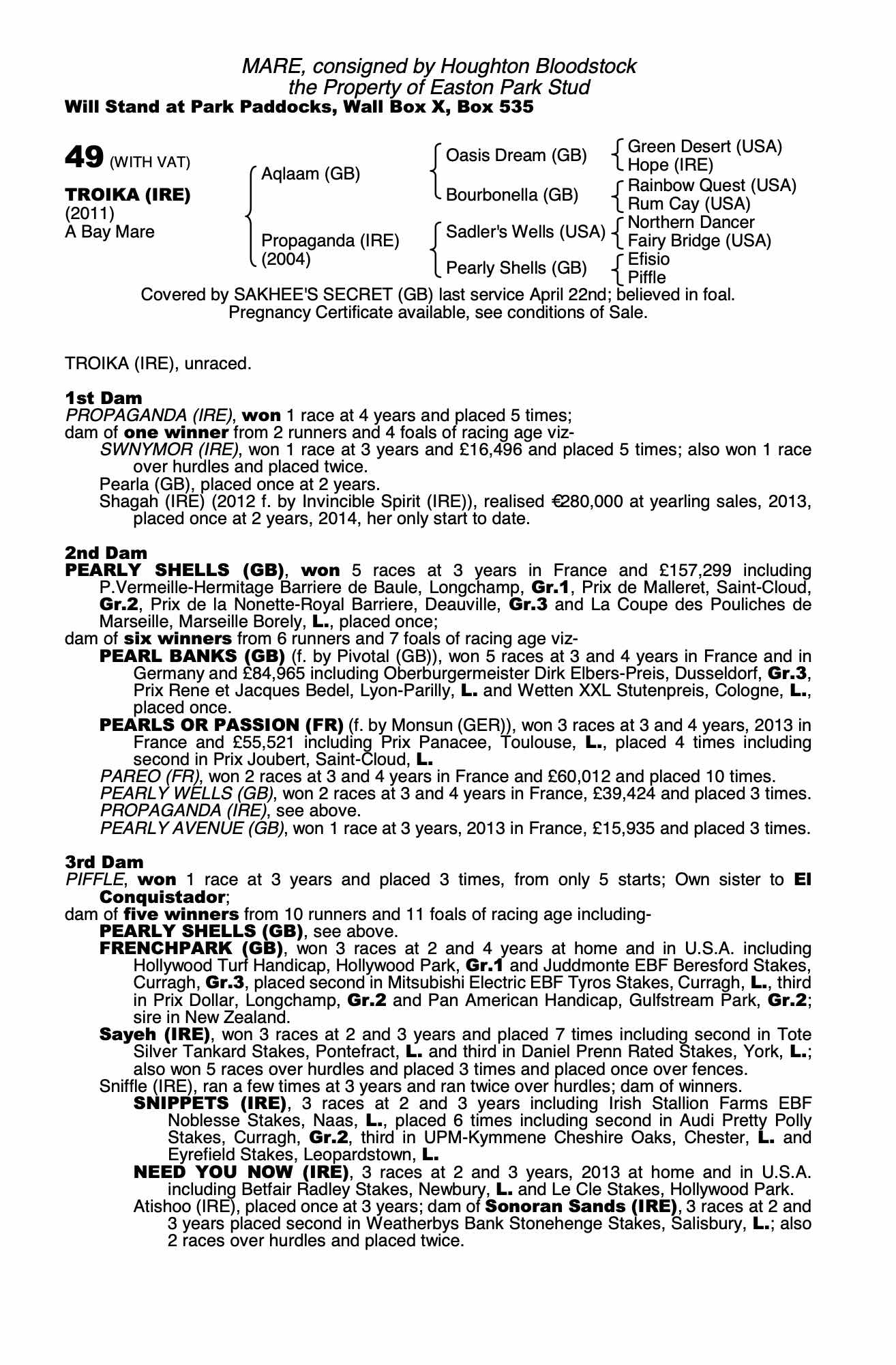 November Flat Sale 2021 lot 1452 Prosili (IRE) (M. by Dansili (GB)), Ballintry Stud=>Vendor €30,000