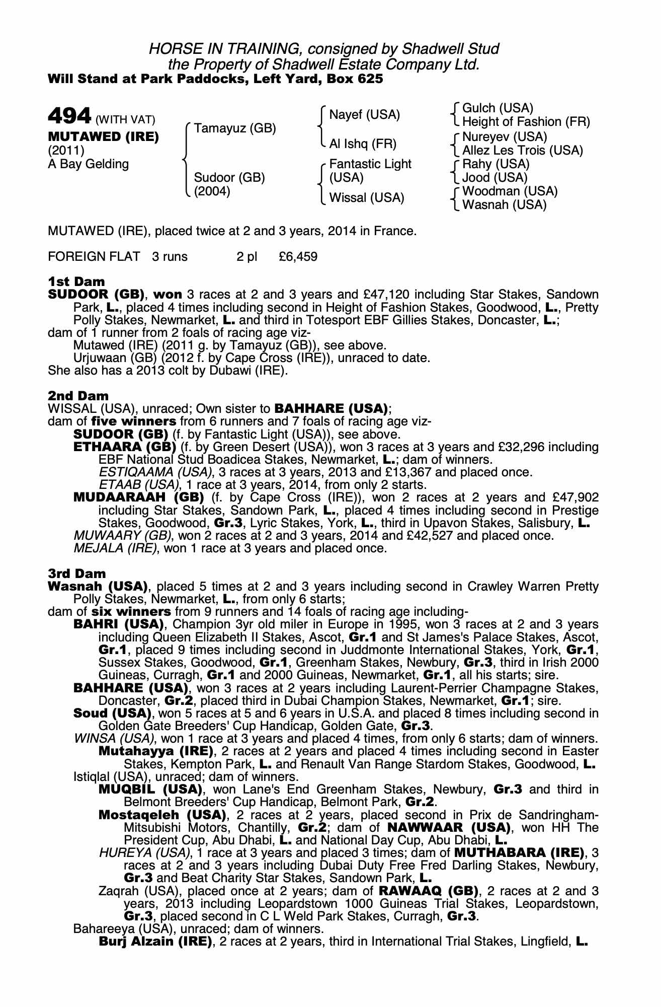 Consignor: Shadwell Stud