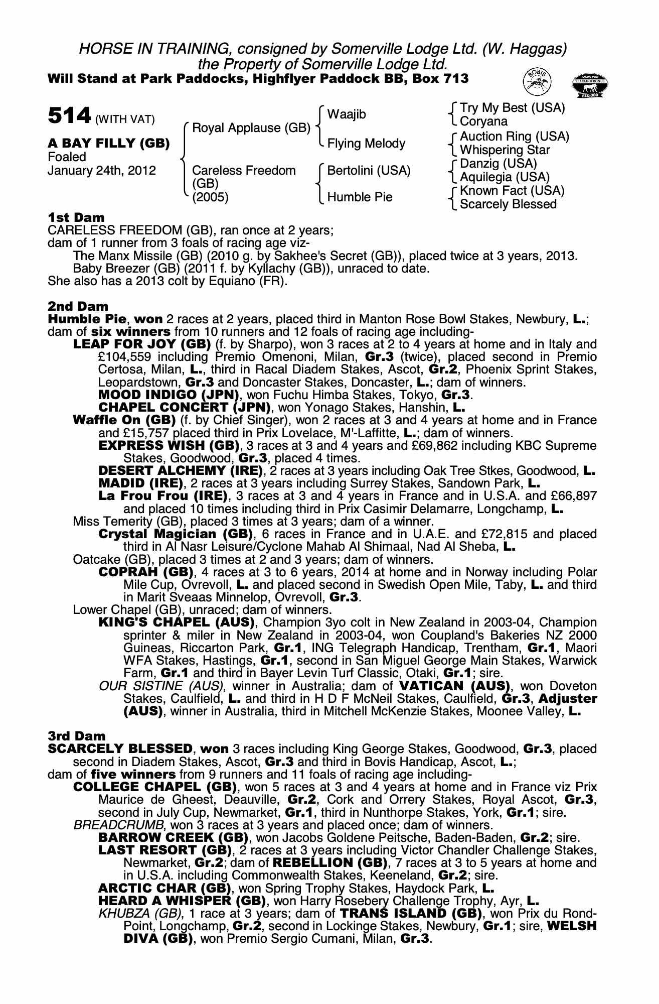 Consignor: Somerville Lodge Ltd. (W. Haggas)