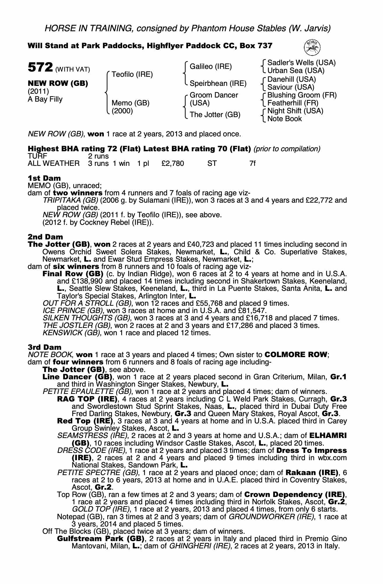 Consignor: Phantom House Stables (W. Jarvis)
