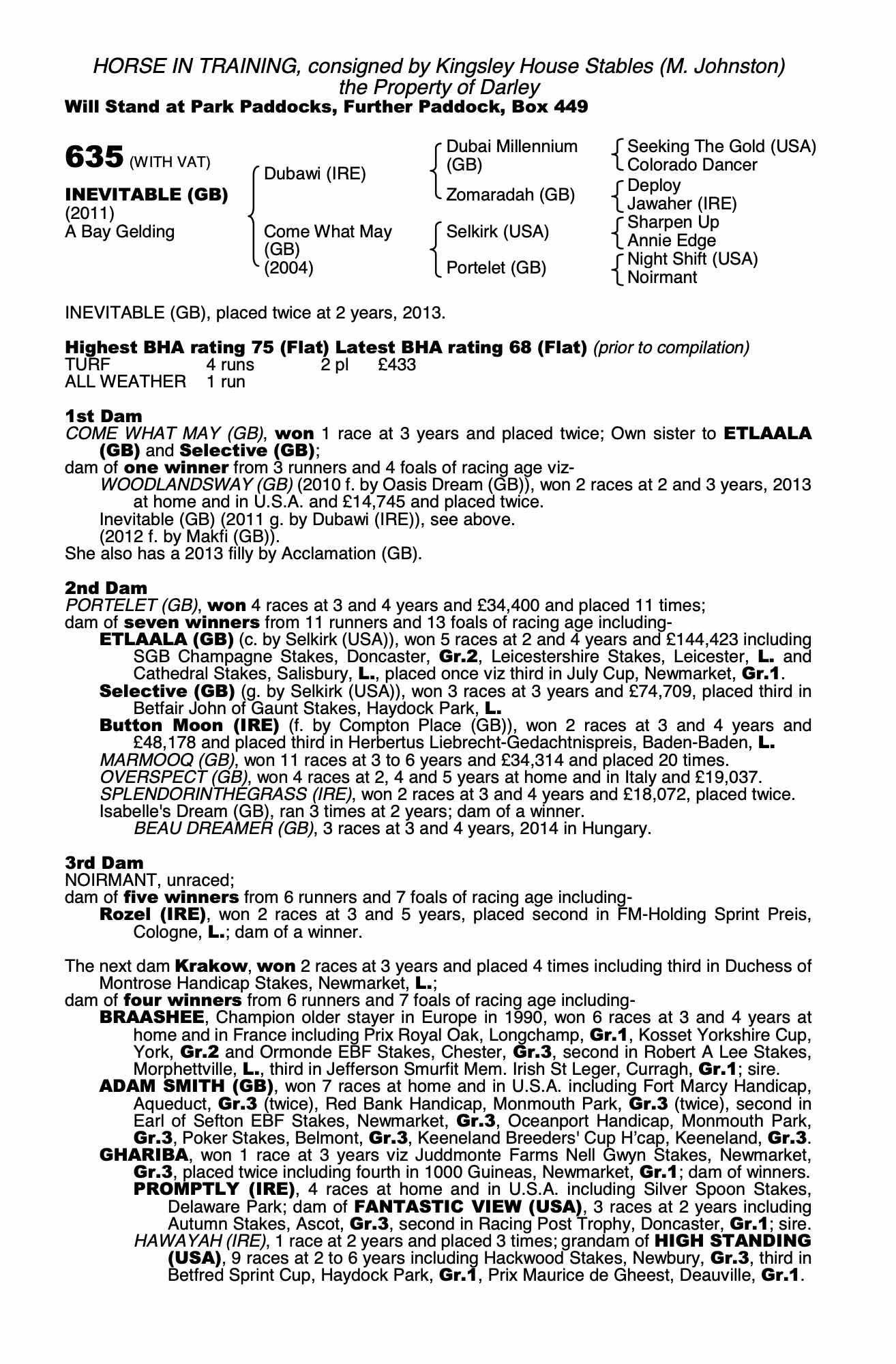 Consignor: Kingsley House Stables (M. Johnston)