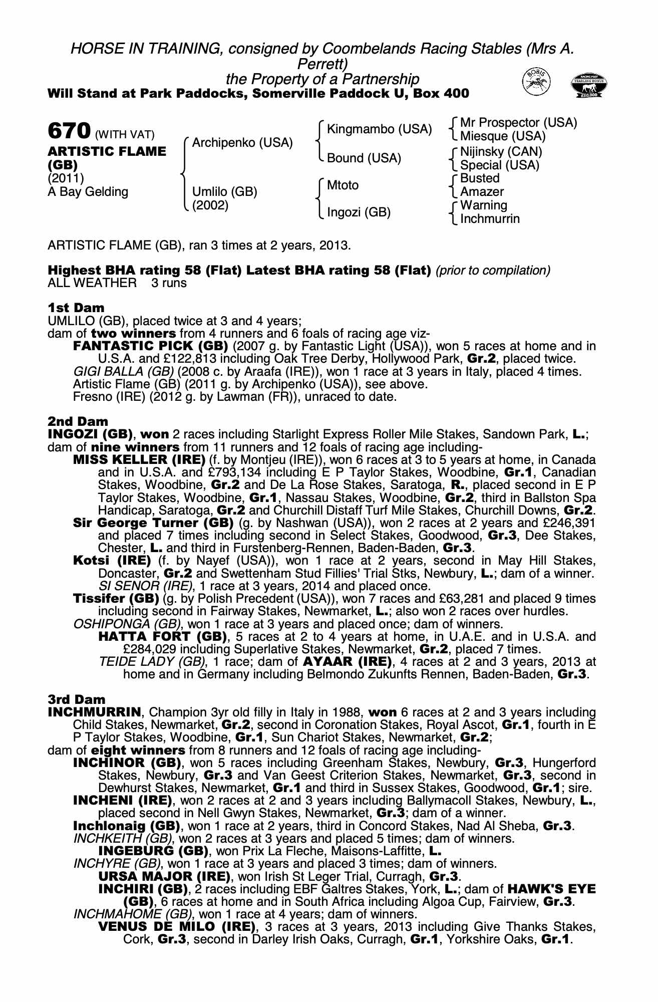 Consignor: Coombelands Racing Stables (Mrs A. Perrett)