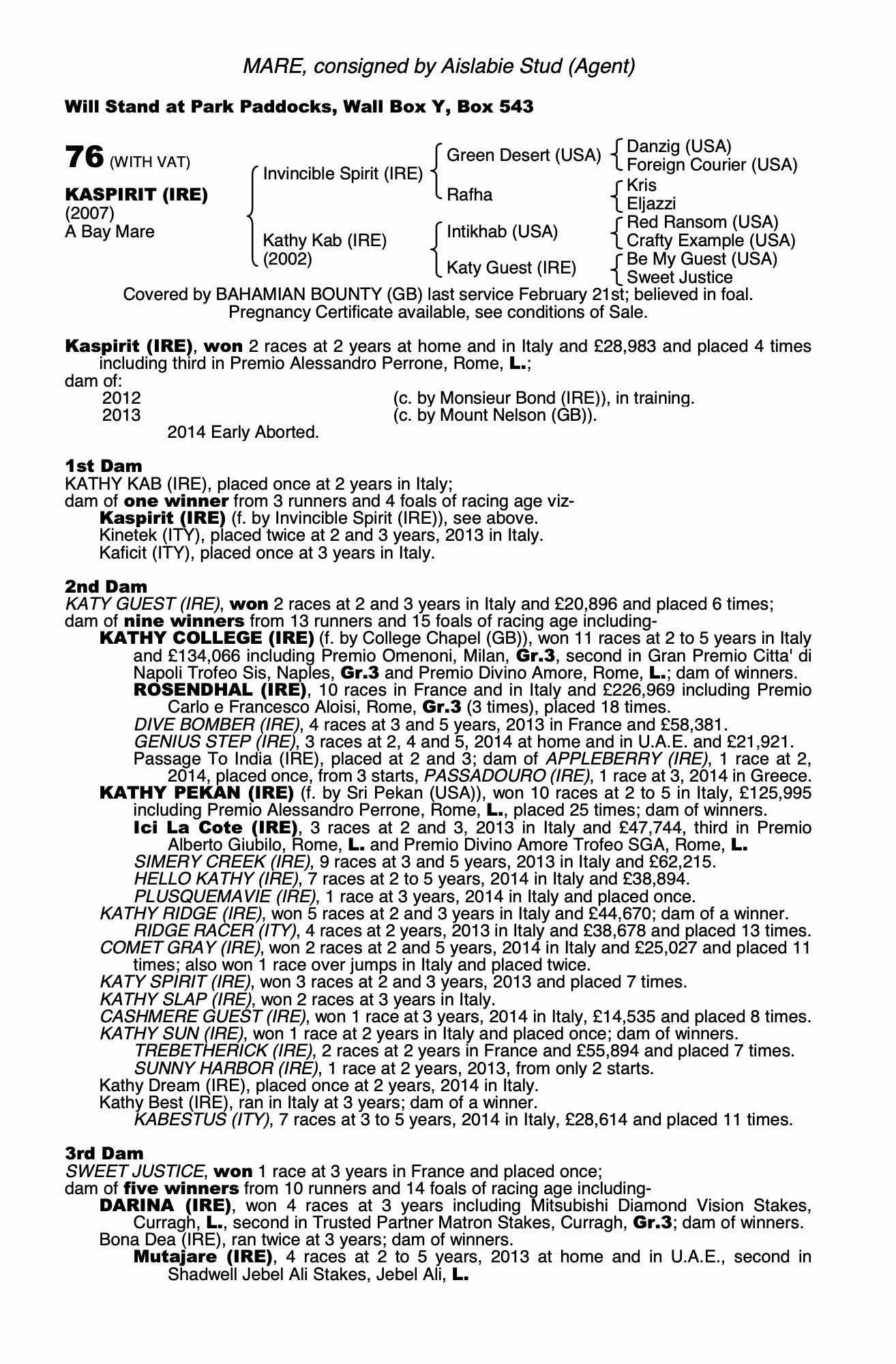 December Mare Sale 2010 lot 1377, Castletown Stud, Ireland (Agent)=>Lot Not Sold 14,000 gns