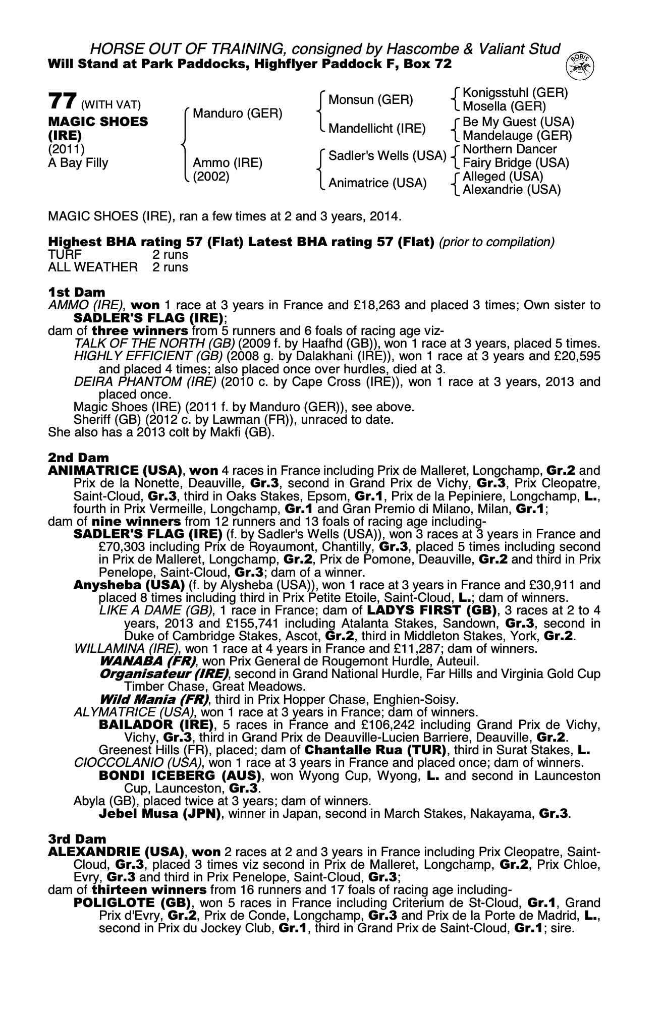 February Sale 2021 lot 43 Riccoche (IRE) (M. by Oasis Dream (GB)), Kirtlington Stud=>Lot Not Sold 7,500 gns
