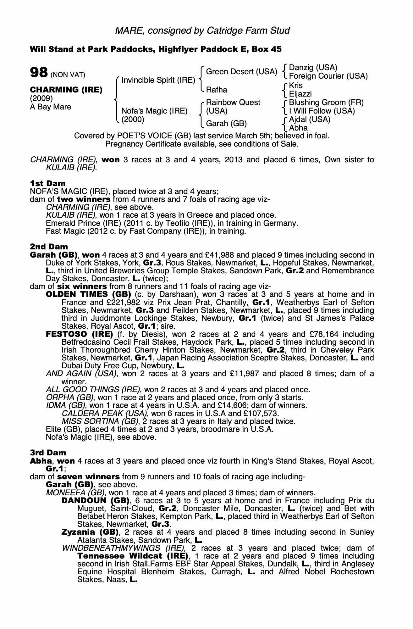 Consignor: Catridge Farm Stud