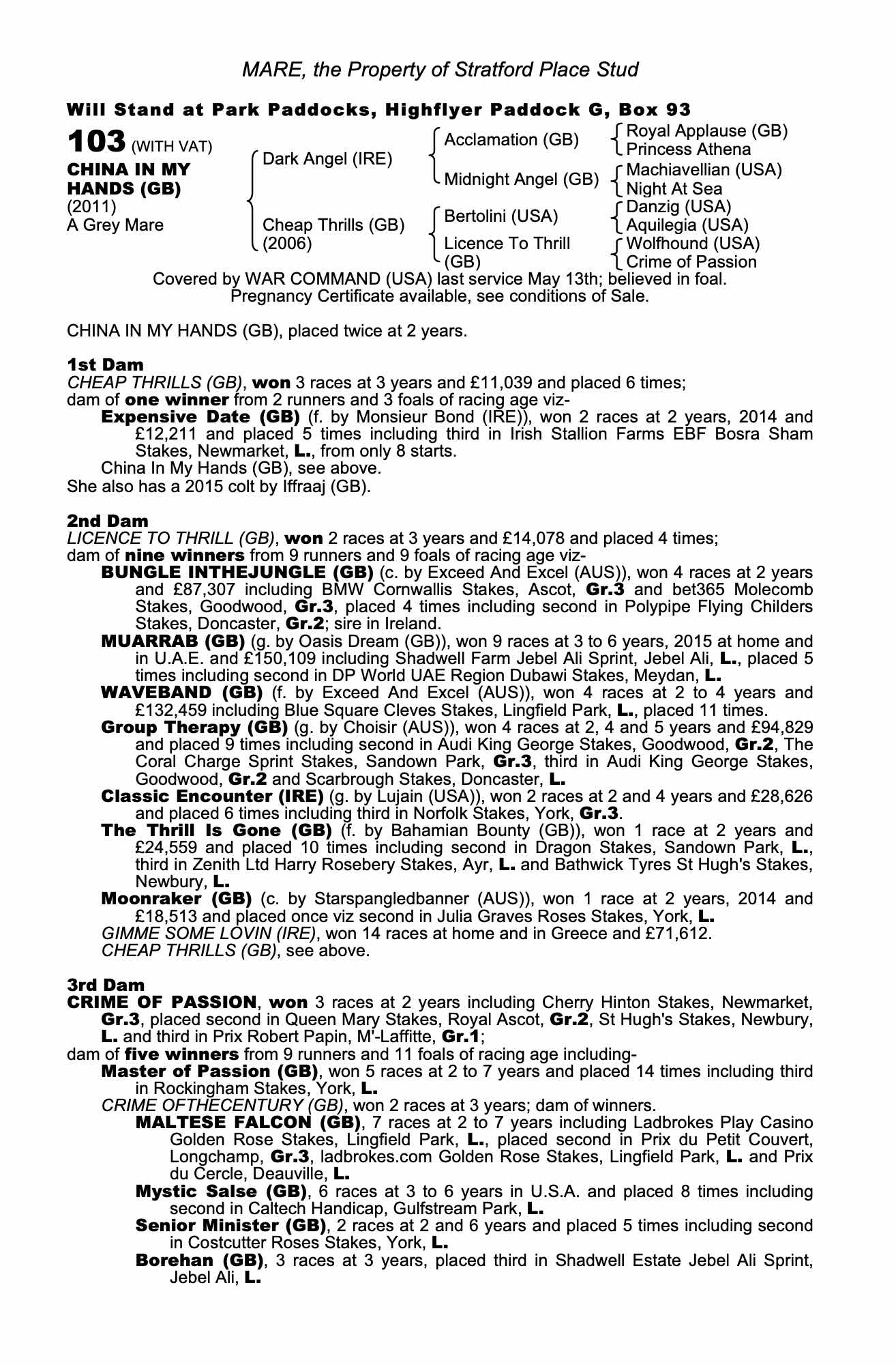 Craven Breeze Up Sale 2018 lot 91 F. by War Command (USA) 2016, Greenhills Farm, Ireland=>Vendor 30,000 gns