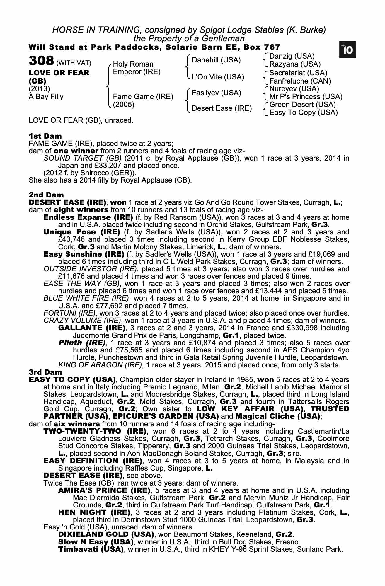 Consignor: Spigot Lodge Stables (K. Burke)