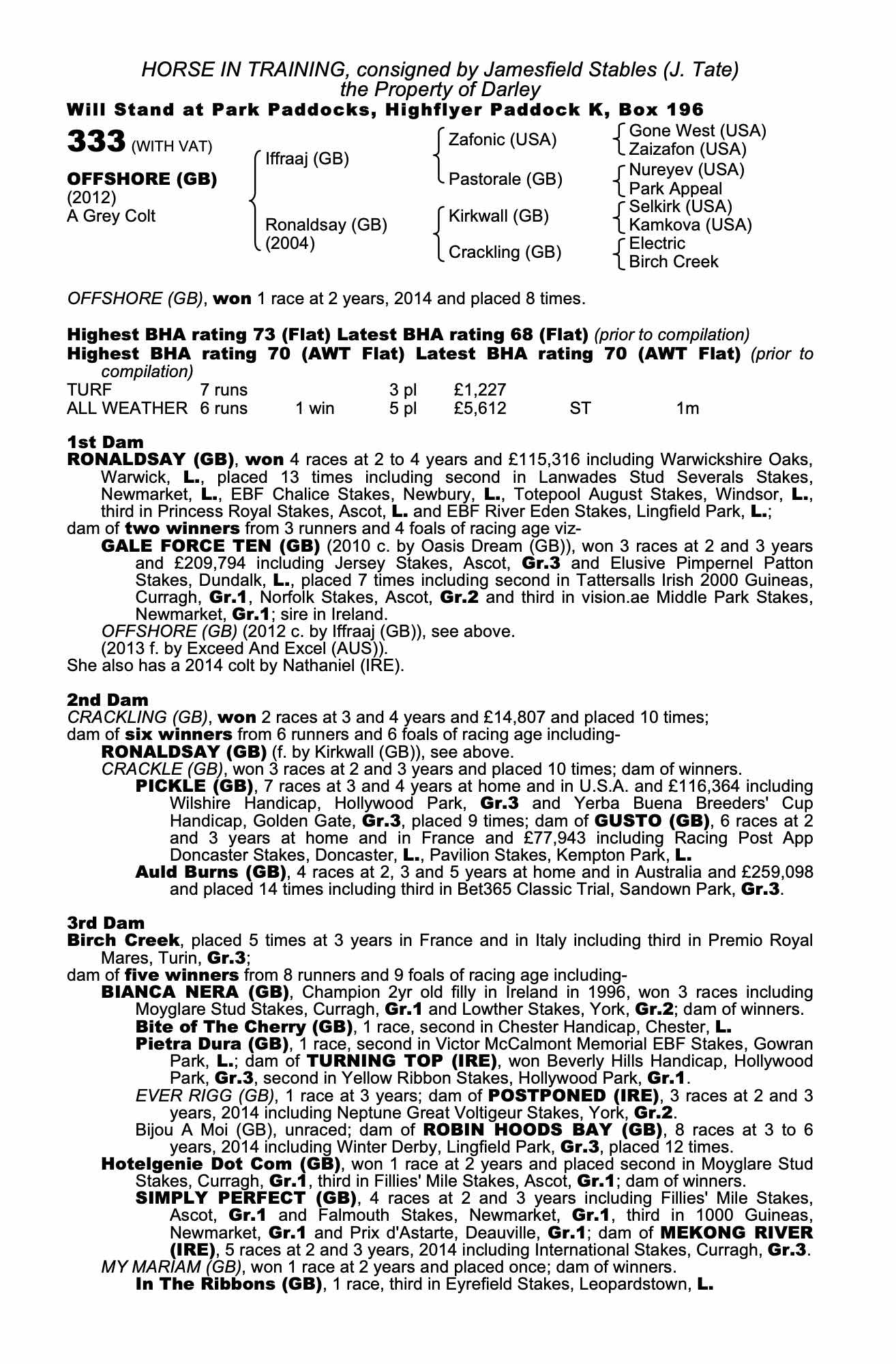 December Yearling Sale 2014 lot 102 F. by Exceed And Excel (AUS) 2013, Stowell Hill Stud=>David Redvers Bloodstock 80,000 gns