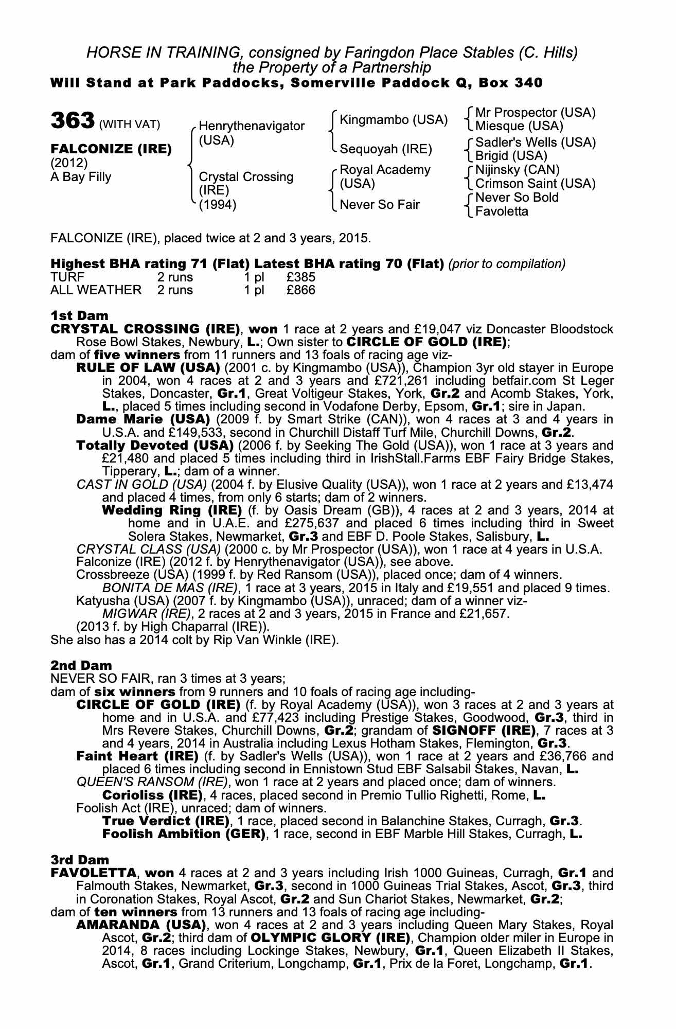 December Mare Sale 2015 lot 1970 Dame Marie (USA) (M. by Smart Strike (CAN)), Baroda & Colbinstown Studs, Ireland=>Marette Farrell Agent for Mount Brilliant Stables 500,000 gns
