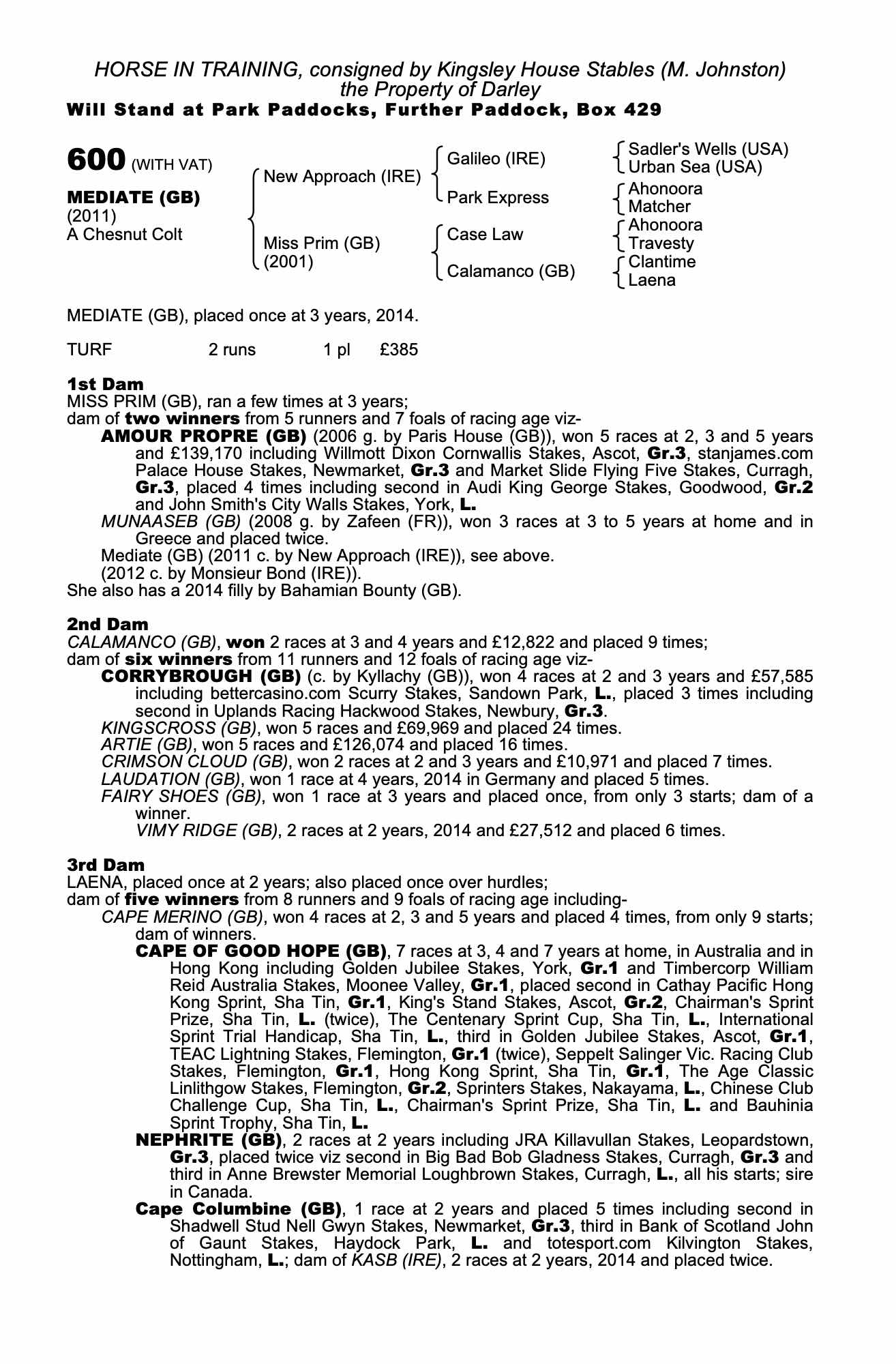 October Yearling Sale, Book 3 2015 lot 1990 F. by Bahamian Bounty (GB) 2014, Throckmorton Court Stud=>Lot Not Sold 11,500 gns