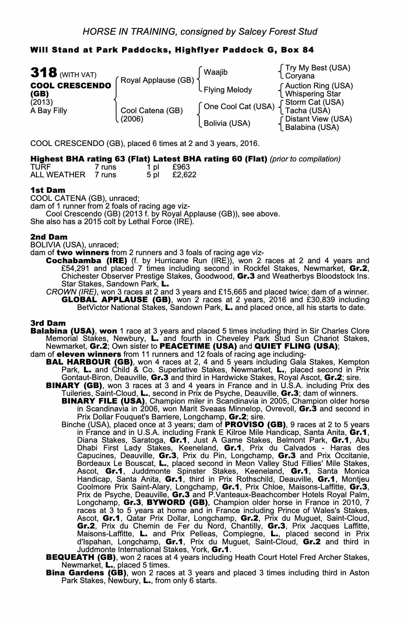 July Sale 2024 lot 649 Duveen (GB) (F. by Poet's Word (IRE)), Cedar Lodge Stables (A. Carson)=>Tony Carson 1,000 gns