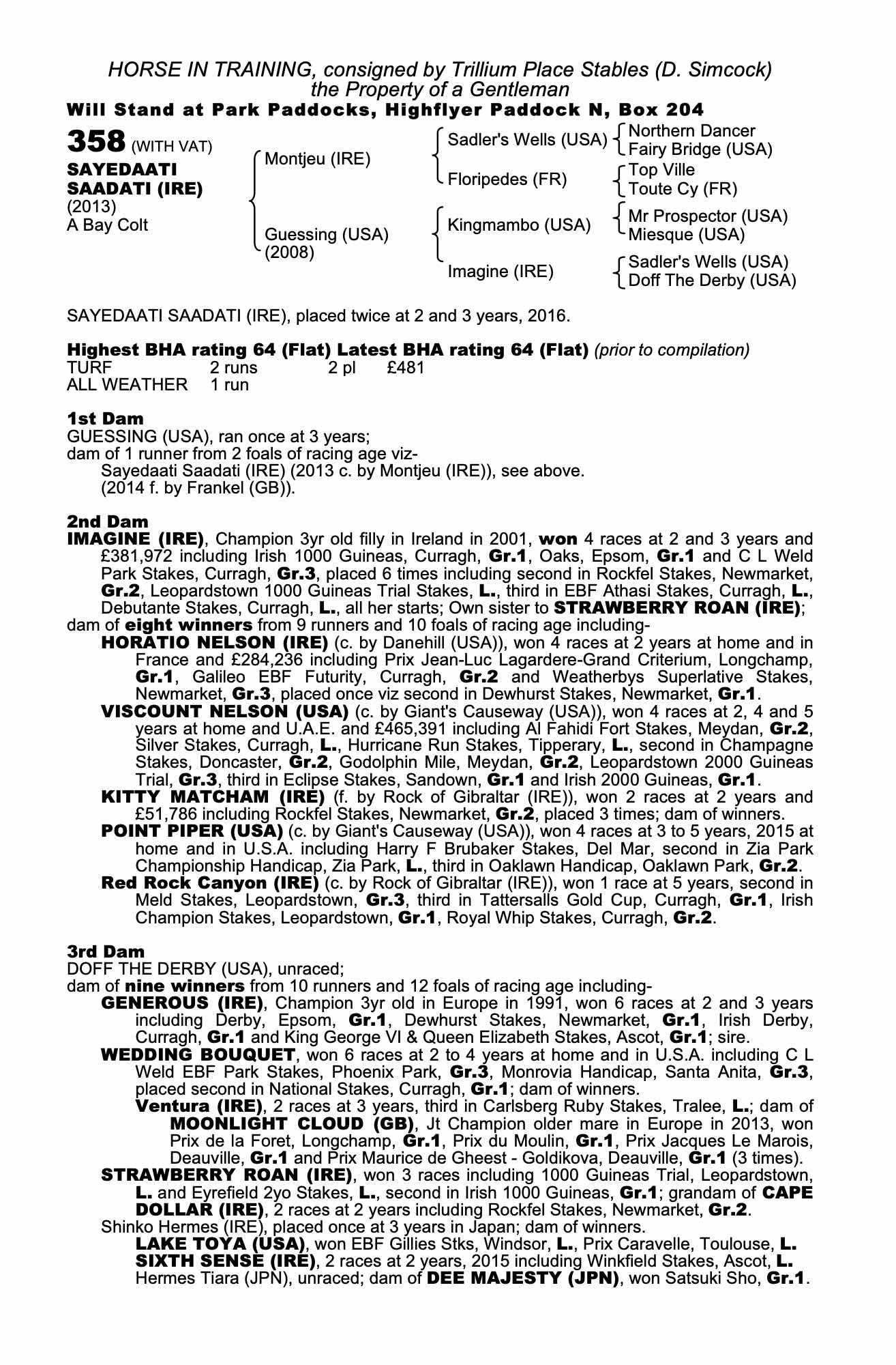 October Yearling Sale, Book 1 2014 lot 317, Barronstown Stud, Ireland=>Lot Withdrawn