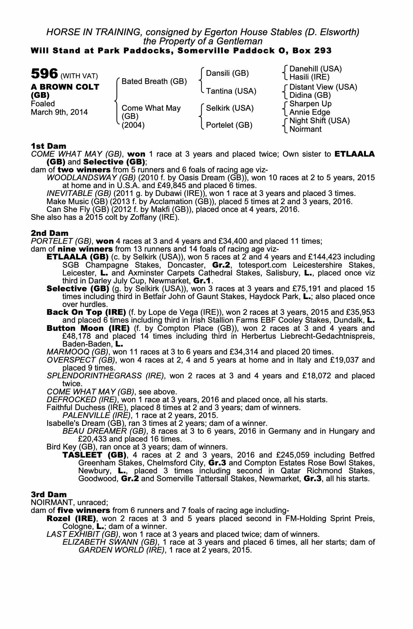 Consignor: Egerton House Stables (D. Elsworth)