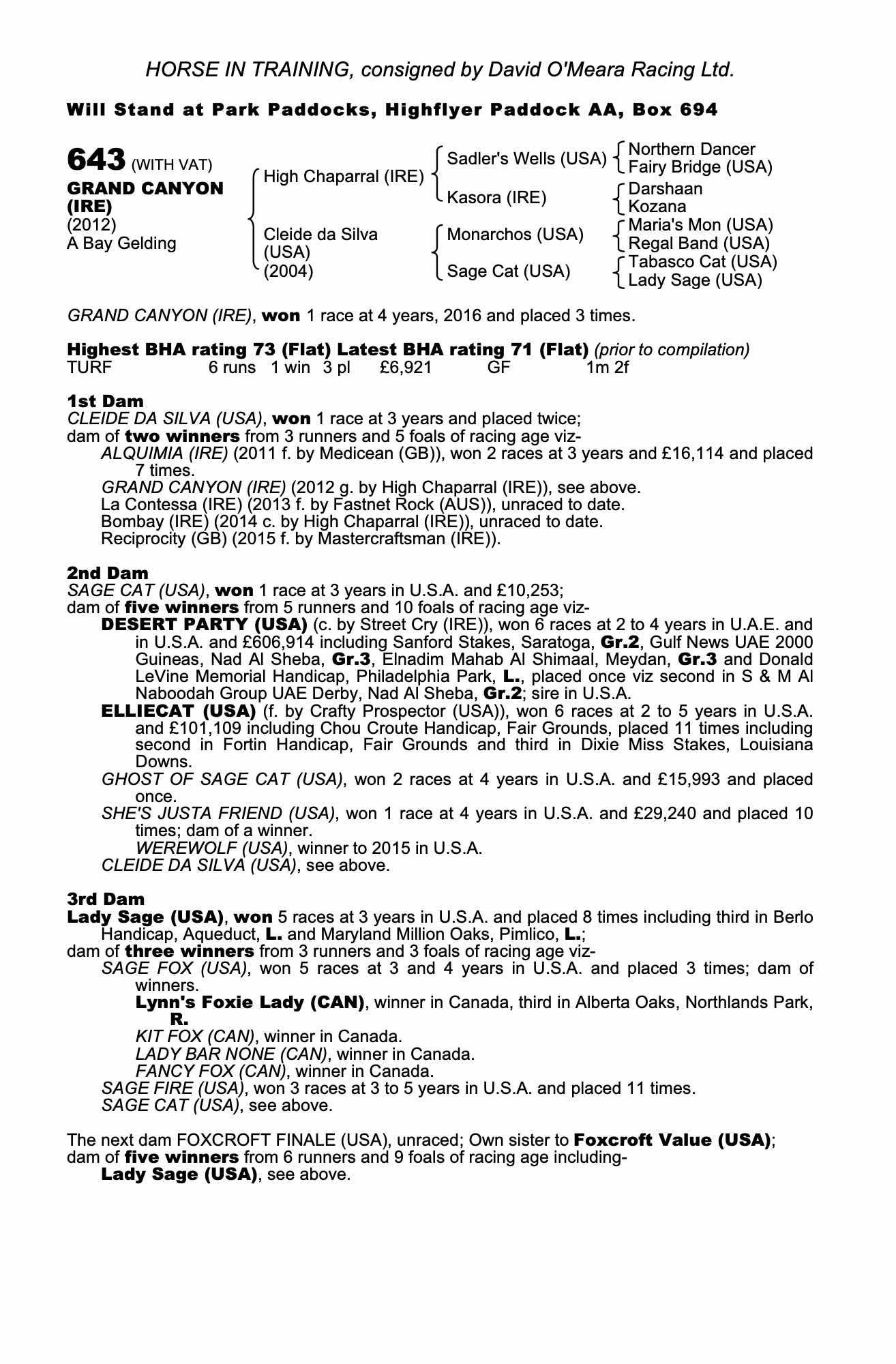 December Mare Sale 2016 lot 2167 La Contessa (IRE) (F. by Fastnet Rock (AUS)), Musley Bank Stables (R. Fahey)=>EARL Dorrells 7,000 gns