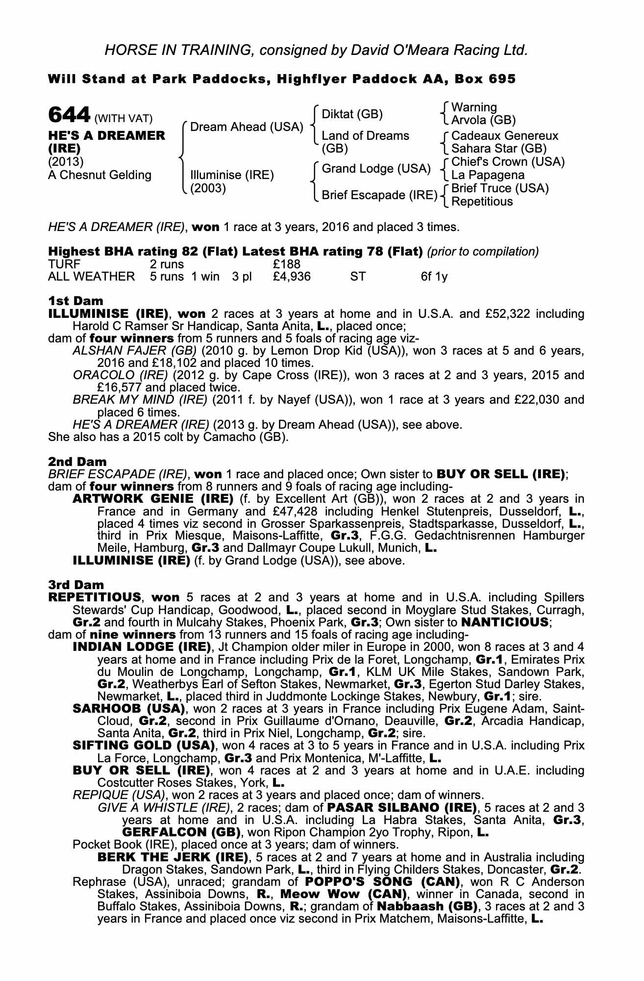 July Sale 2018 lot 788 Los Camachos (IRE) (C. by Camacho (GB)), Ty-Derlwyn Farm (P. Evans)=>Lot Not Sold 48,000 gns
