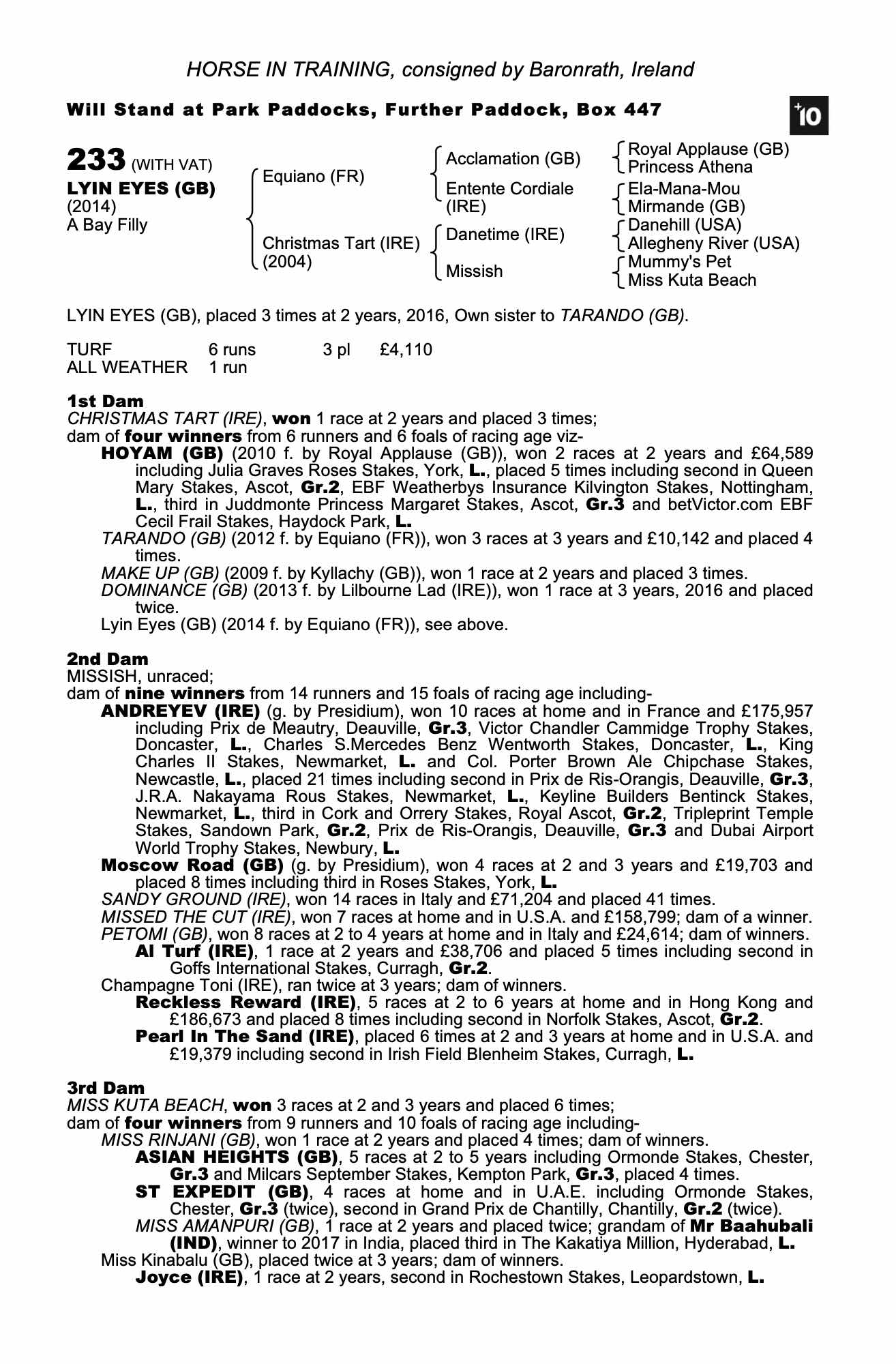 Consignor: Baronrath, Ireland