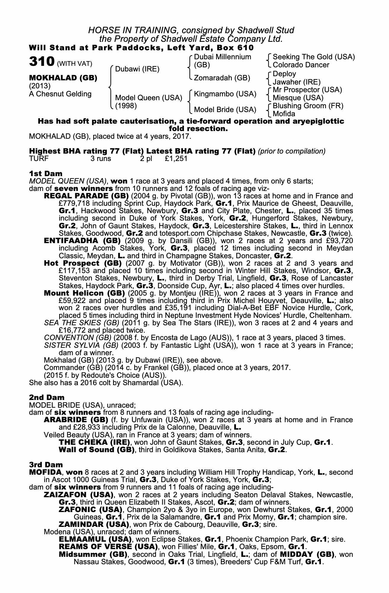 Consignor: Shadwell Stud
