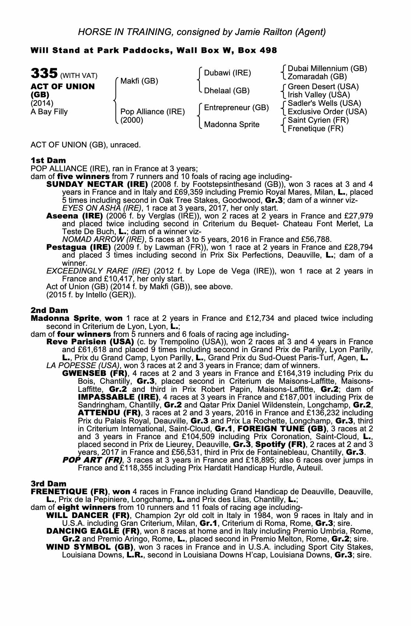 Under 2nd Dam – ATTENDU (FR), placed 3rd in Prix de Ris – Orangis, Maisons – Laffitte, Gr.3.Spotify (FR), Placed 2nd in Prix Daphnis, Maisons – Laffitte, Gr.3.