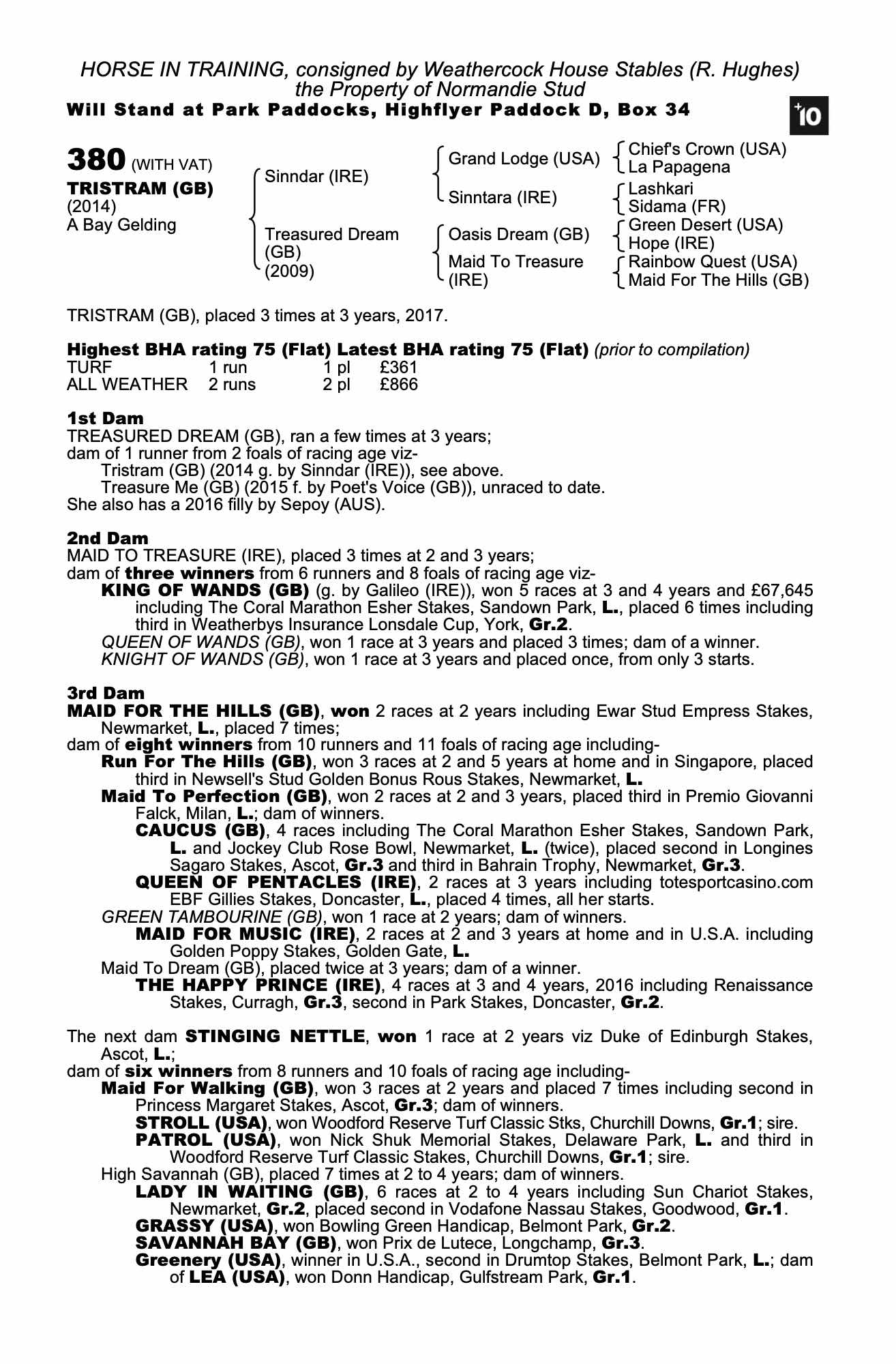 Ascot November Sale 2018 lot 73, Barton Hall Stables (John Mackie)=>David White £600