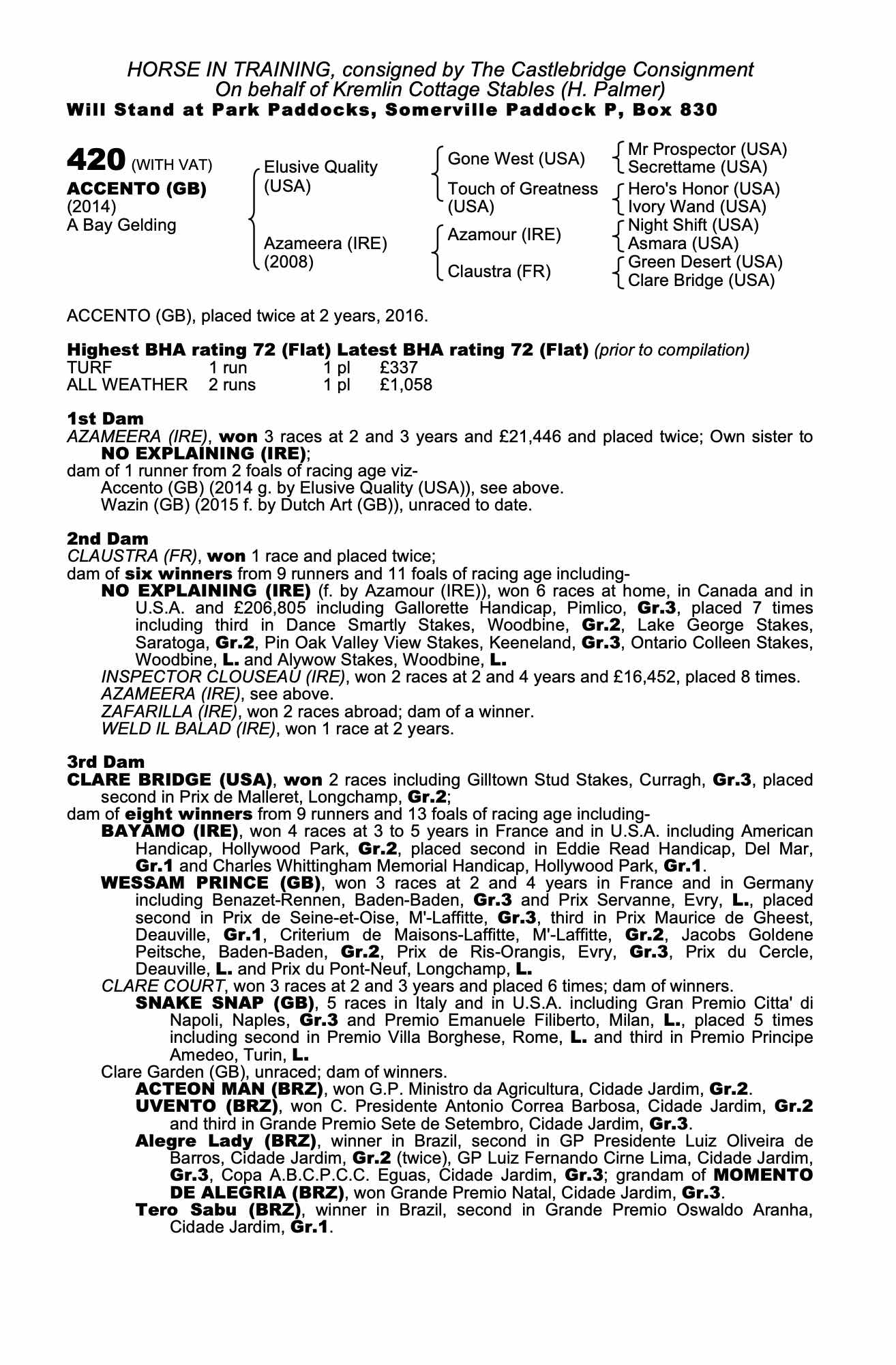 Online Sale - 14th December 2023 lot 95 Wazin (GB) (M. by Dutch Art (GB)), Gow Equine Ltd.=>Lot Not Sold 900 gns