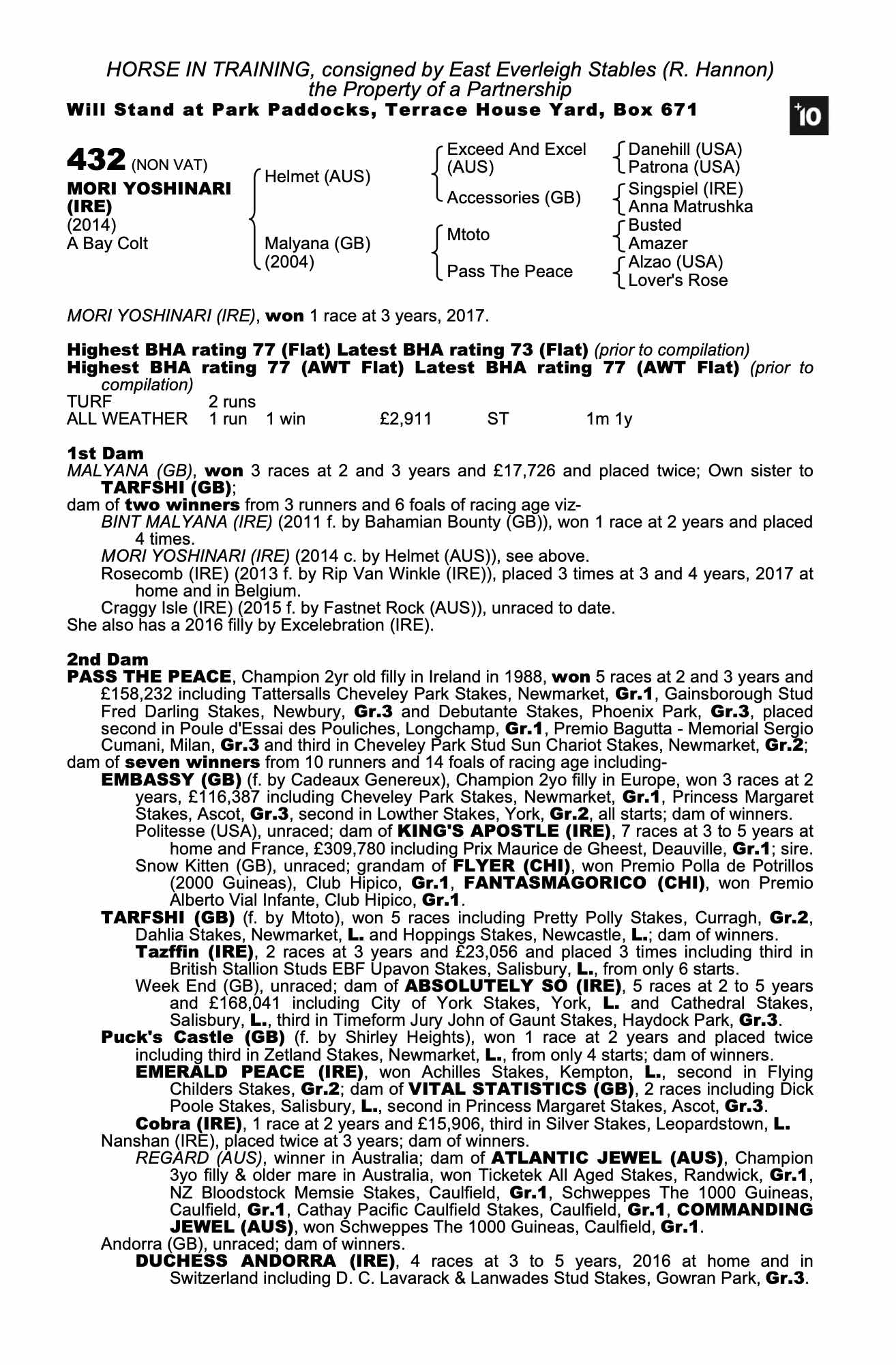 Consignor: East Everleigh Stables (R. Hannon)