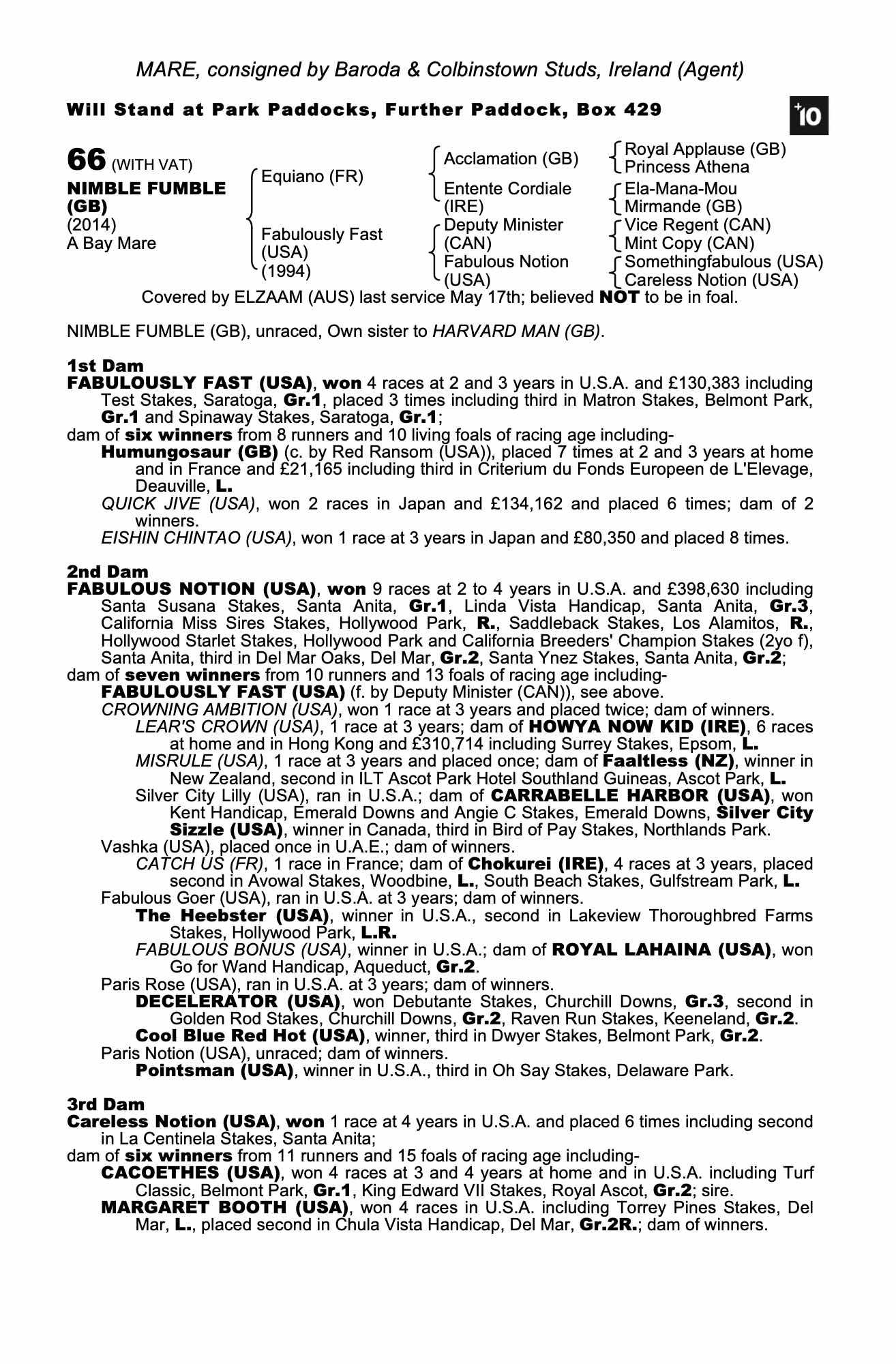 Consignor: Baroda & Colbinstown Studs, Ireland (Agent)