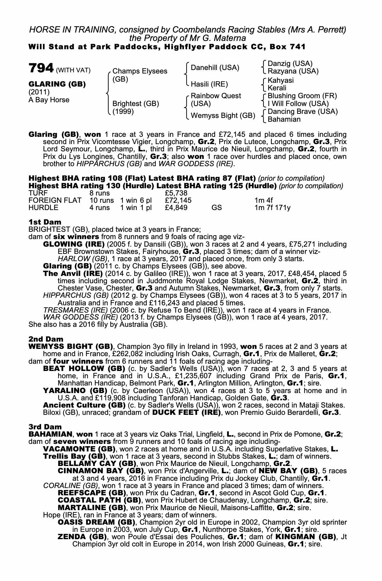 Consignor: Coombelands Racing Stables (Mrs A. Perrett)