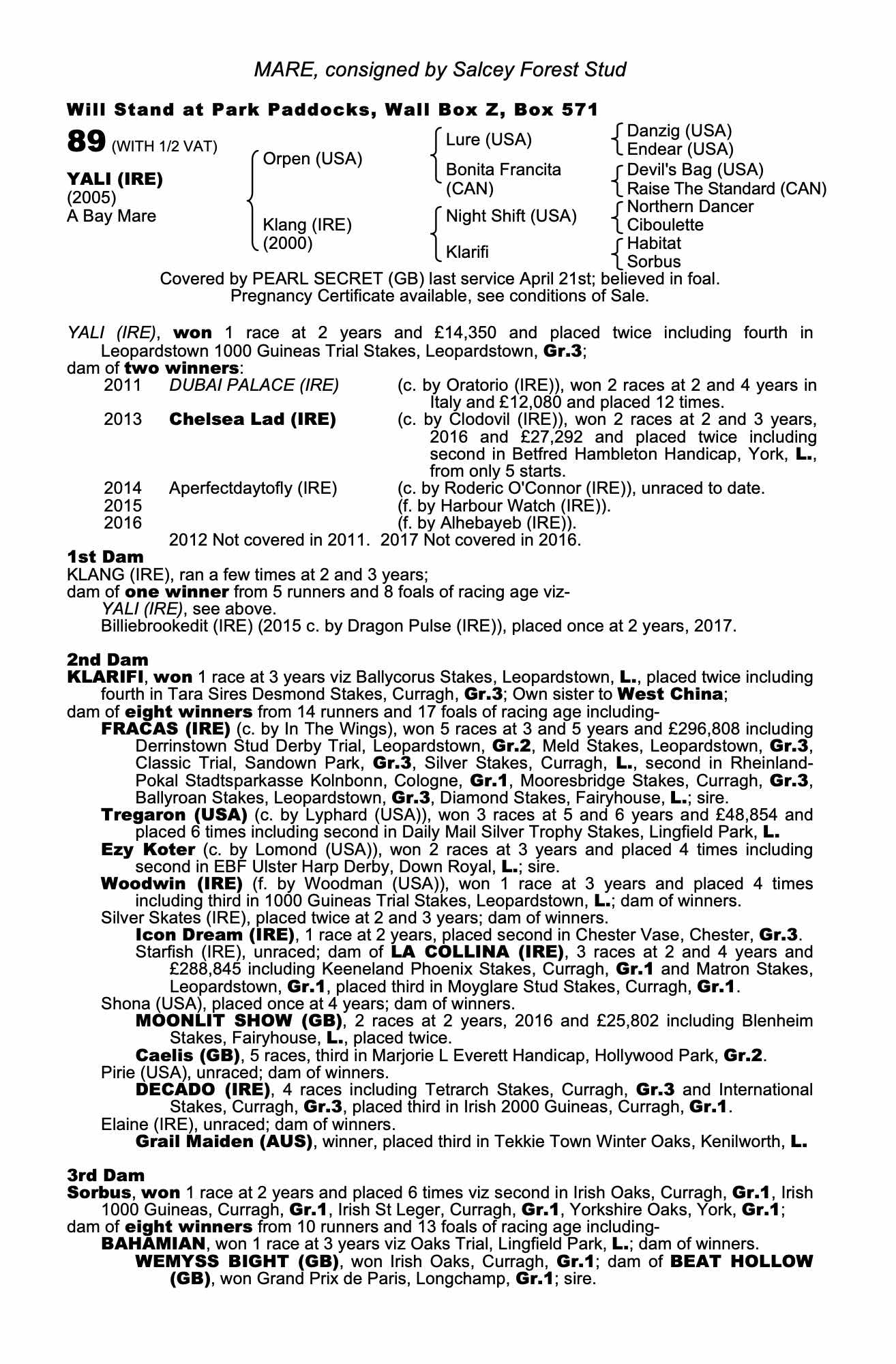 September Yearling Sale 2019 lot 87 F. by Pearl Secret (GB) 2018, Mount Eaton Stud=>Knockgraffon €7,500