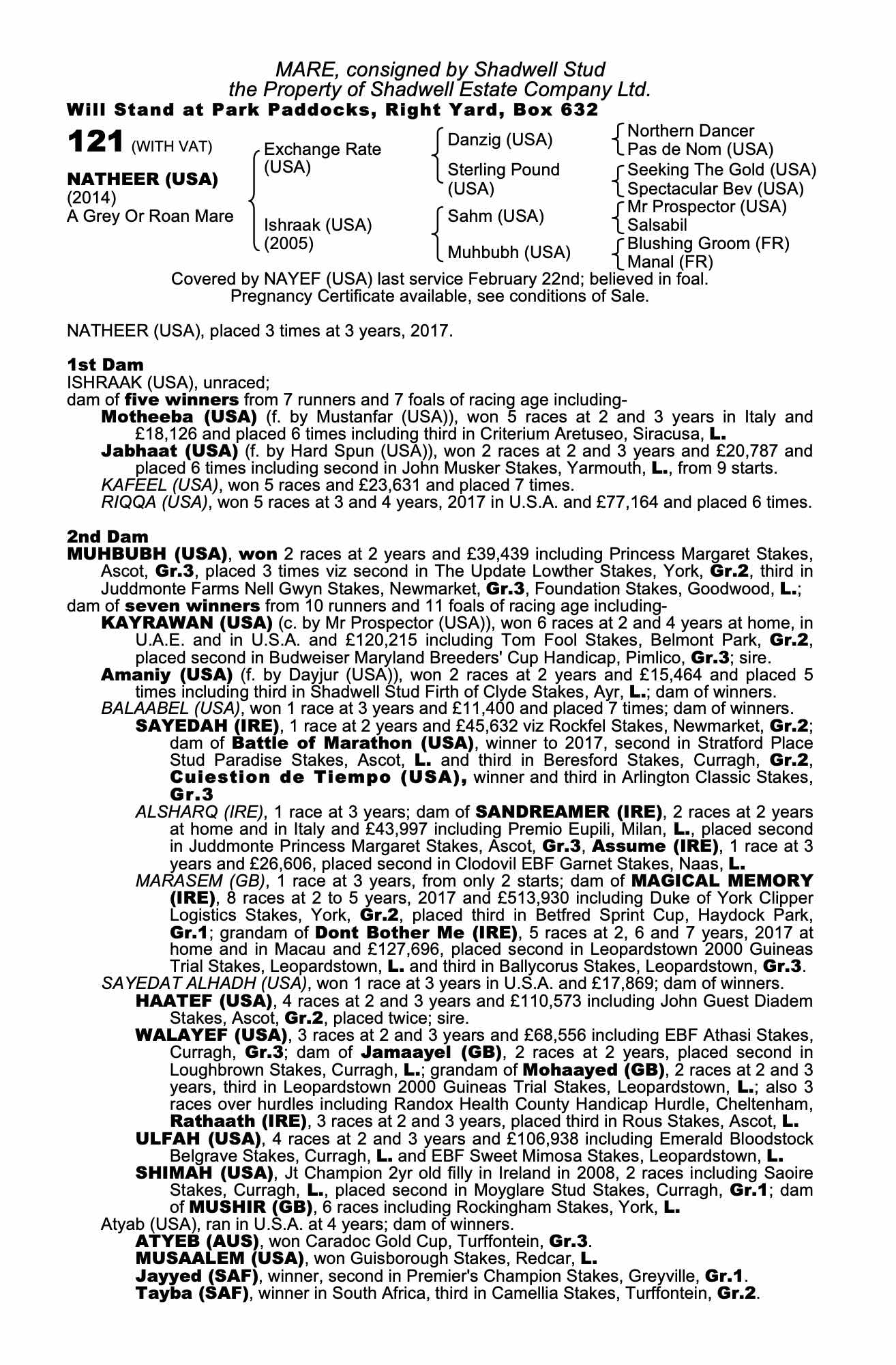August Sale 2020 lot 107 Daafy (USA) (G. by The Factor (USA)), Shadwell Stud=>Lot Not Sold